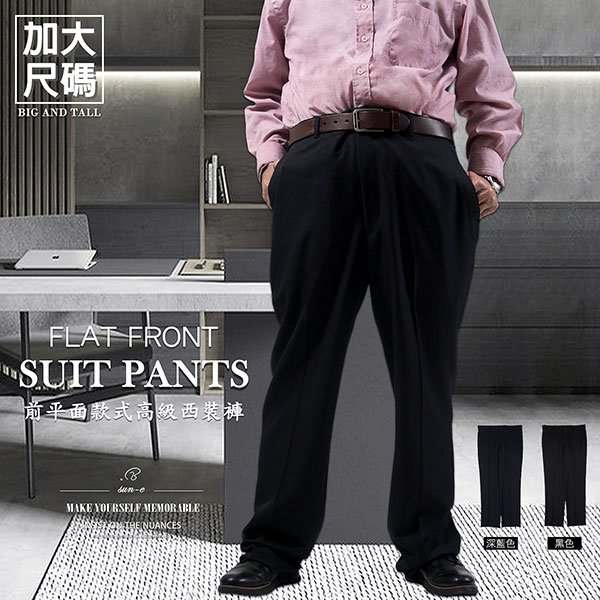 加大尺碼西裝褲 台灣製西裝褲 平面西裝褲 彈性西裝褲 正式場合西裝長褲 上班族西裝褲 商務西褲 百貨公司等級 前平面款式 YKK拉鍊 大尺碼長褲 黑色西裝褲 大尺碼男裝 打褶長褲 Big And Tall Flat Front Suit Pants Made In Taiwan Suit Pants Stretch Suit Pants (305-1692-21)黑色、(305-1693-08)深藍色 腰圍40 42 44 46 48 50 52 54 56(英吋) 男 [實體店面保障] sun-e