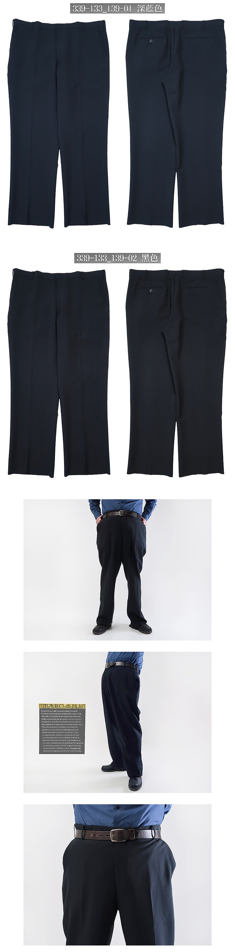 sun-e加大尺碼西裝褲、平面西裝褲、標準西裝長褲、上班西裝褲、正式場合西裝褲、商務西裝褲、西褲、百貨公司等級、前平面款式、YKK拉鍊、大尺碼長褲、黑色西裝褲、Big And Tall、Flat Front Suit Pants (339-133_139-01)深藍色、(339-133_139-02)黑色 腰圍:44 46 48 50(英吋) 男 [實體店面保障]