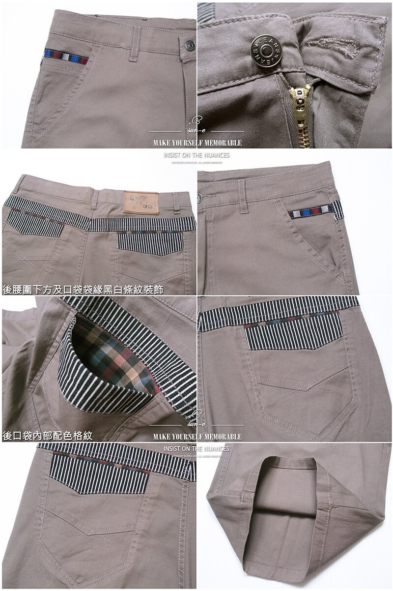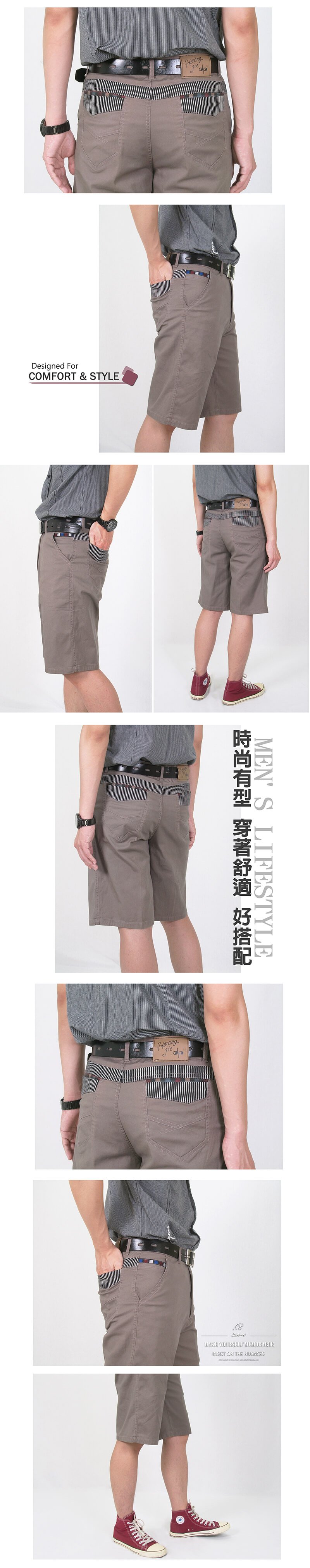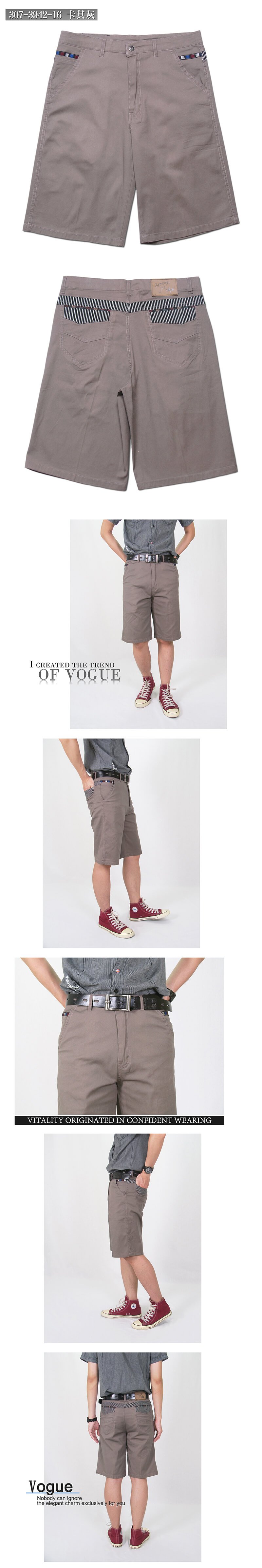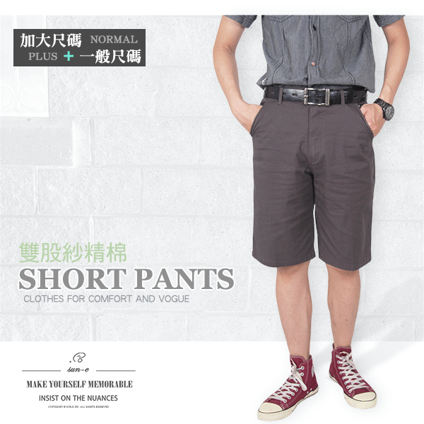 sun-e加大尺碼雙股紗精棉薄短褲、彈力休閒短褲、時尚潮流五分褲、格紋配色後口袋休閒褲、SHORTS (307-3104-22)鐵灰色、(307-3942-16)卡其灰 腰圍:30~41(英吋) [實體店面保障]