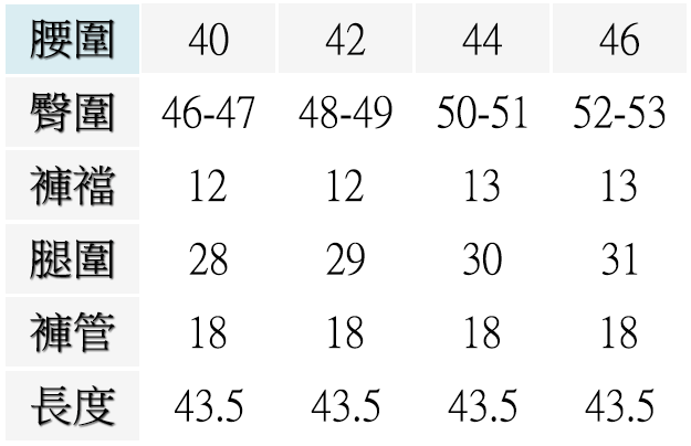 ▍尺寸表 Size Chart