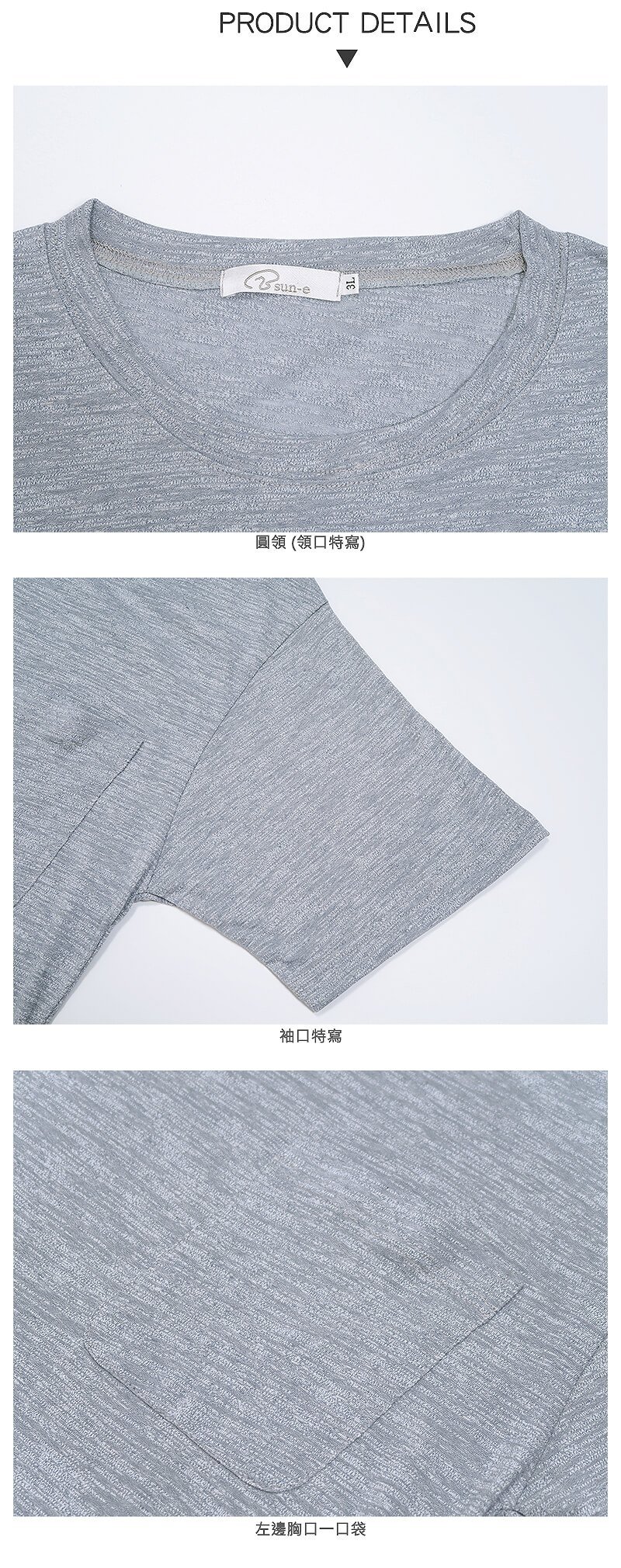 sun-e加大尺碼T恤、台灣製T恤、薄款彈性休閒短Tee、紋理短袖T恤、口袋T恤、素面T恤、大尺碼男裝、百搭圓領T恤、短袖上衣、Made In Taiwan、Big_And_Tall、Crewneck Short Sleeve Heather Grey T-shirt (310-1210-22)灰色T恤、(310-1210-89)黑色T恤 胸圍:50~55英吋 男 [實體店面保障]