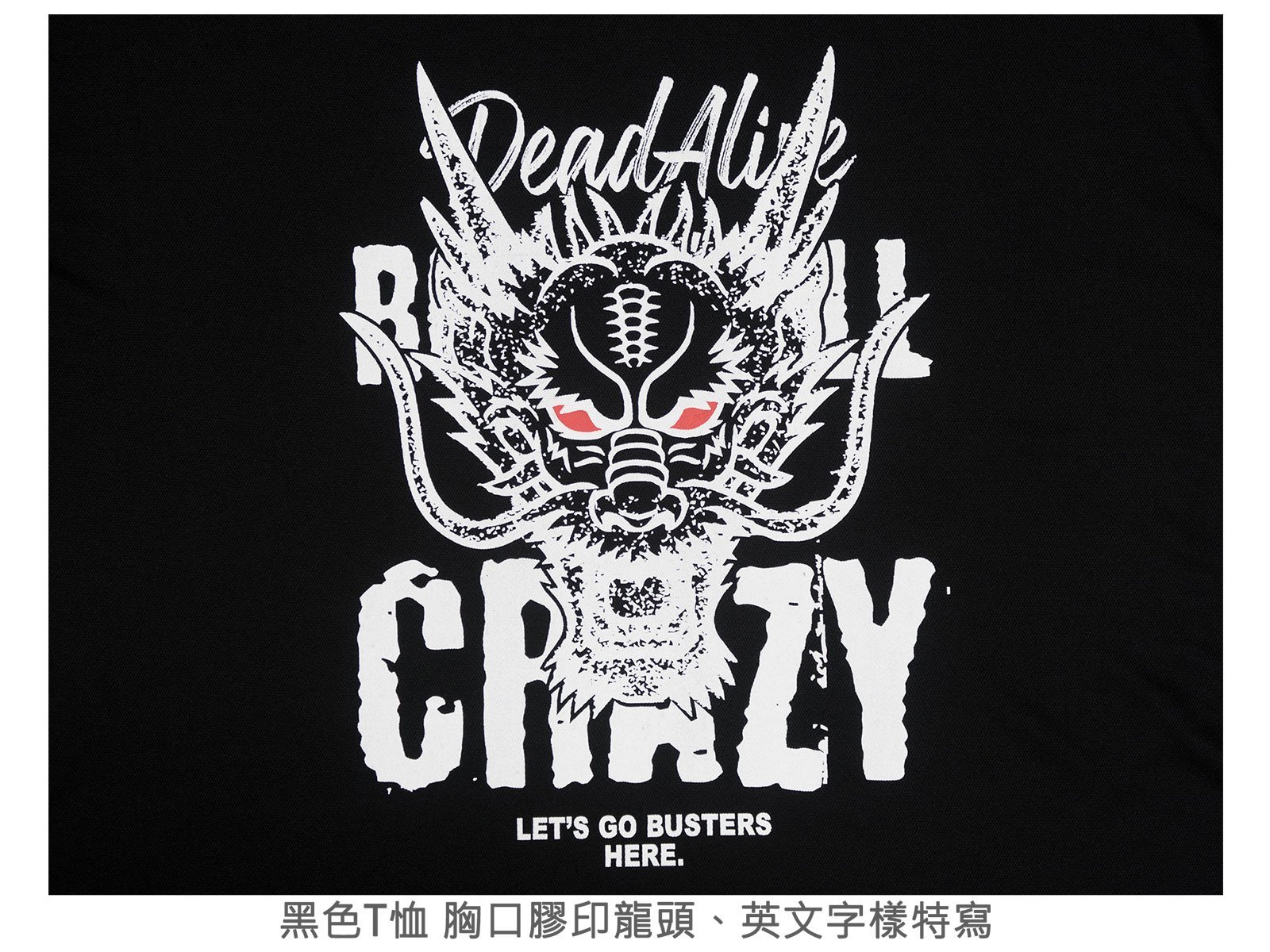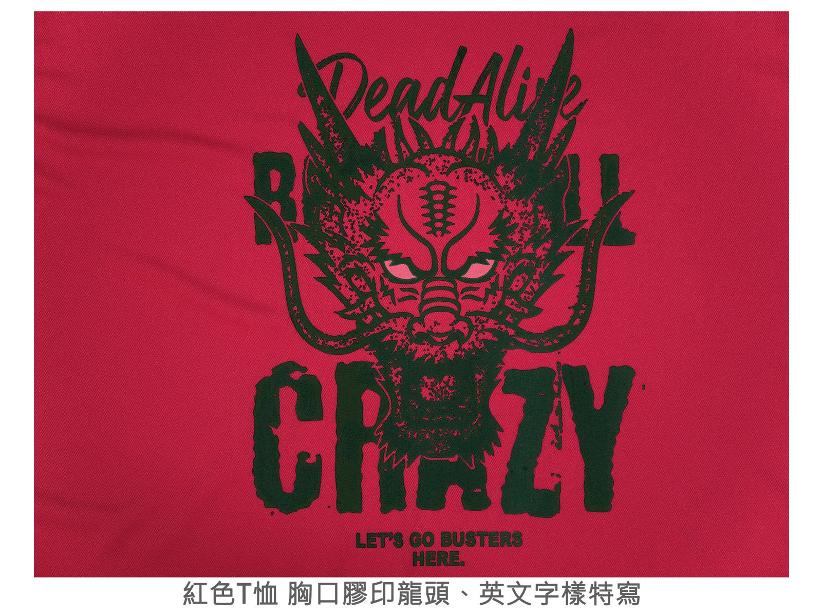 胸口膠印龍頭、英文字樣。