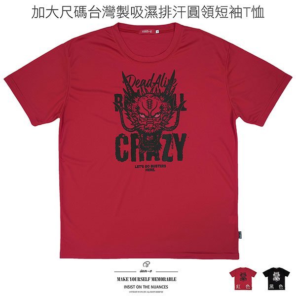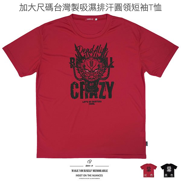 sun-e加大尺碼T恤、吸濕排汗T恤、台灣製T恤、超彈力短袖T恤、龍頭T恤、英文字T恤、透氣速乾運動T恤、圓領T恤、大尺碼男裝、機能性布料短袖上衣、潮流短Tee、黑色T恤、Made In Taiwan T-shirts、Big And Tall T-shirts、Moisture Wicking T-shirt、Dragon Head T-shirts、Short Sleeve T-shirts、Crew Neck T-Shirts、Quick Drying Breathable Fabric (310-3681-02)紅色、(310-3681-21)黑 色 4L 5L (胸圍:52~60英吋 / 132~152公分) 男 [實體店面保障]