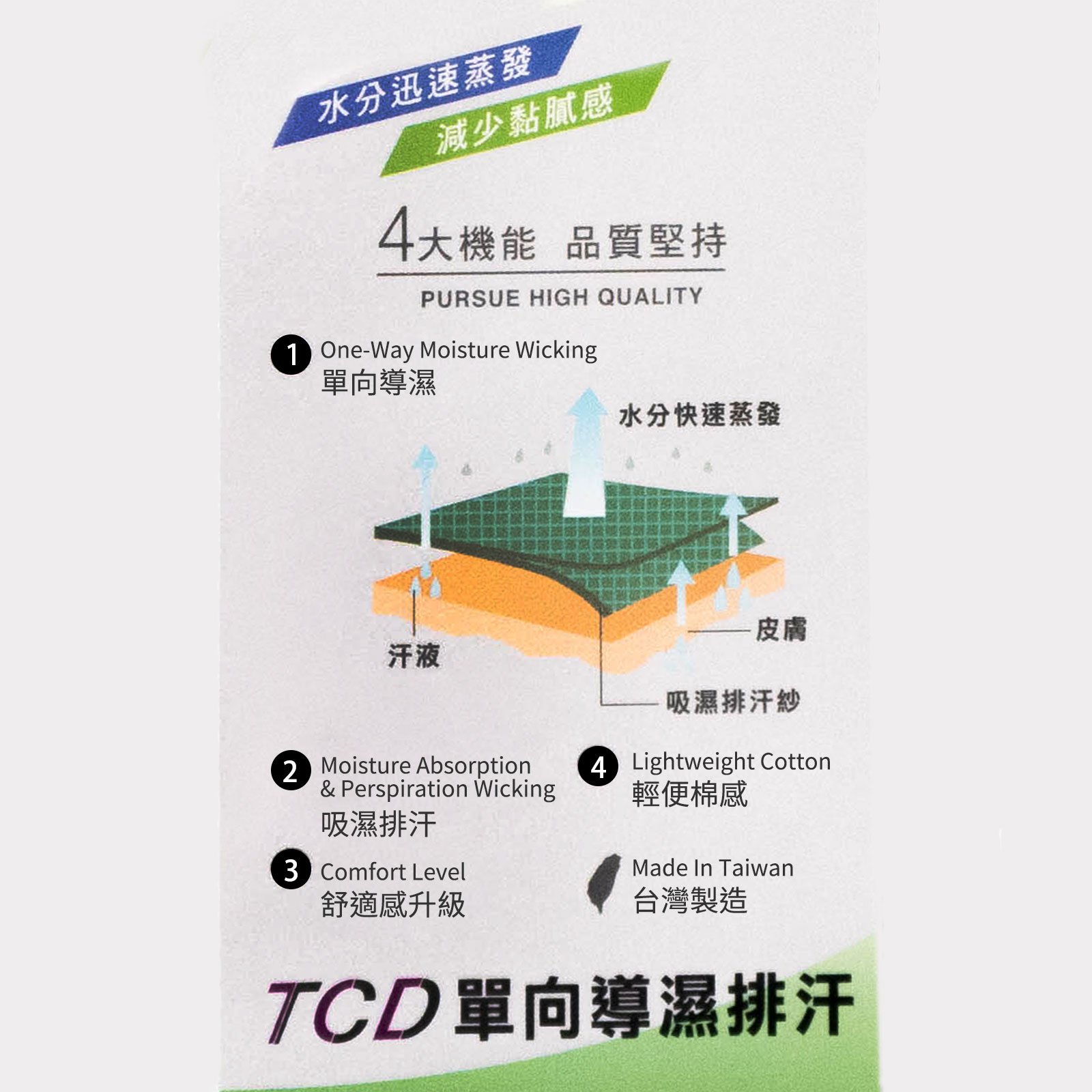 讓皮膚表面汗水可以快速被帶出,並在布料外層擴散增加與空氣接觸的面積,達到快速吸濕排汗的效果。