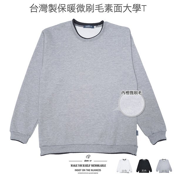 台灣製保暖微刷毛圓領大學T,柔棉舒適好穿搭,暖和時尚必備單品! !