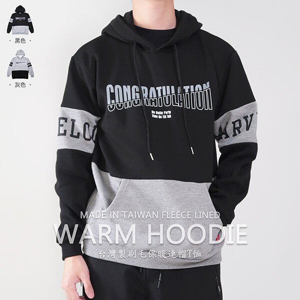 sun-e台灣製刷毛帽T、保暖帽T、英文字刷毛Tee、連帽T恤、長袖T恤、台灣製帽T、連帽上衣、帽子T恤、長袖上衣、休閒長T、Made In Taiwan Fleece Lined Warm Hoodie、T-shirt (310-1280-21)黑色、(310-1280-22)灰色 L XL (胸圍:44~46英吋) 男 [實體店面保障]