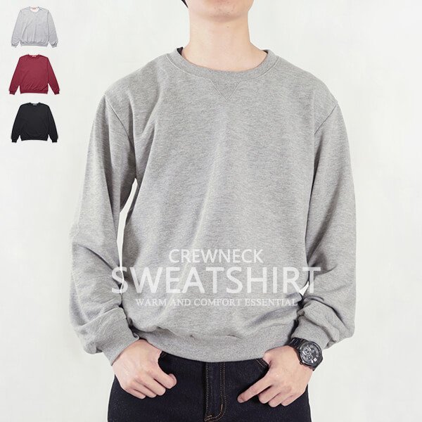 sun-e台灣製素面大學T、圓領長袖T恤、素面T恤、T-shirt、長袖上衣、休閒長TEE、灰色T恤、黑色T恤、MADE IN TAIWAN、CREW NECK SWEATERSHIRT、HEATHER GREY (310-1818-04)酒紅色、(310-1818-21)黑色、(310-1818-22)灰色 L XL(胸圍:44~47英吋) [實體店面保障]