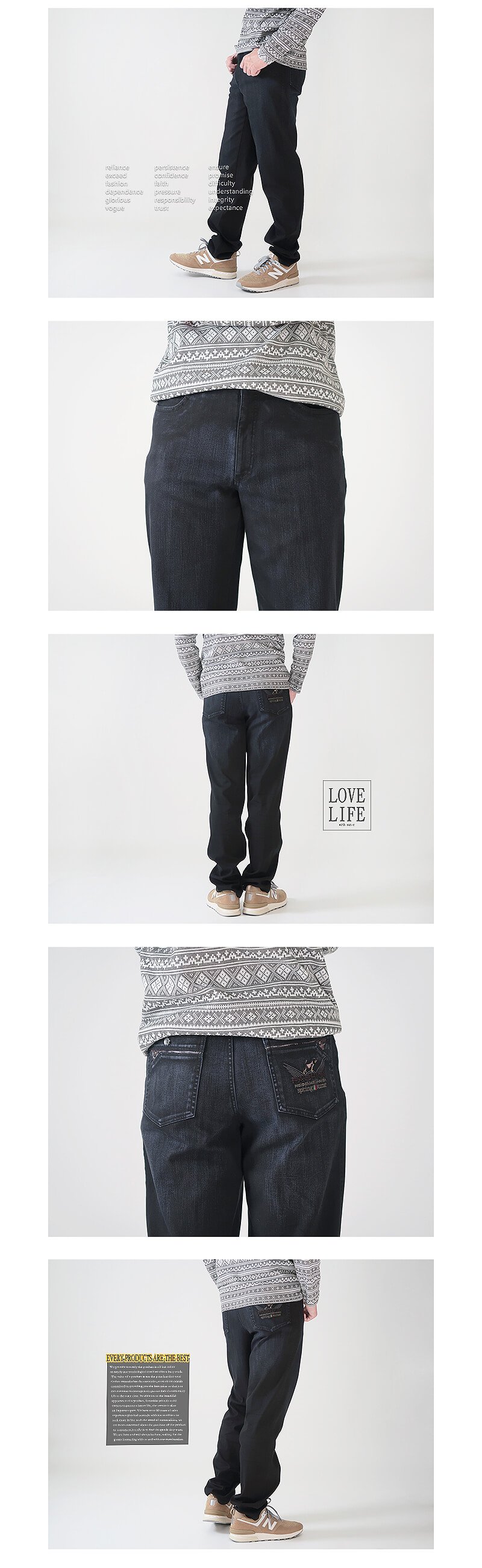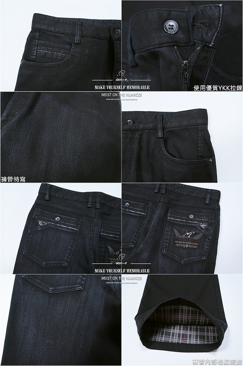 腰圍有皮帶環(褲耳)、褲檔使用優質YKK拉鍊。