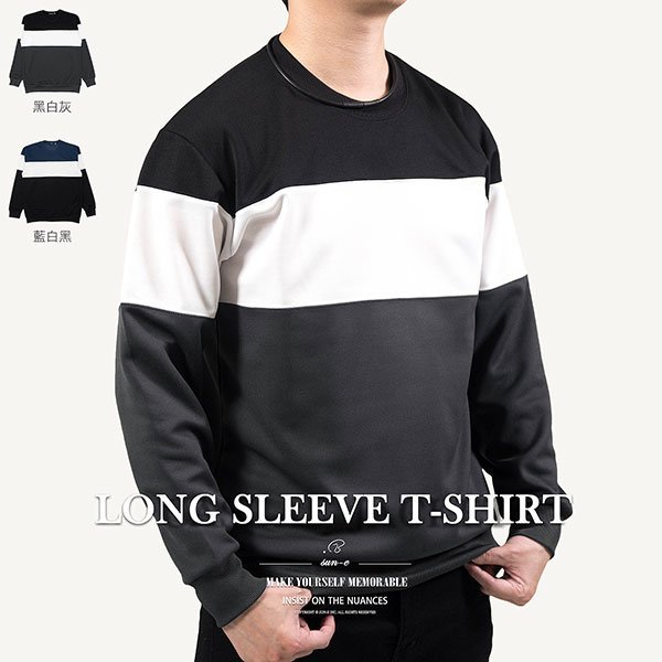 sun-e台灣製長袖T恤、圓領T恤、長袖上衣、百搭配色T恤、羅紋布袖口長Tee、Made In Taiwan T-shirts、Long Sleeve T-shirts、Crew Neck T-Shirts (310-3195-09)藍白黑、(310-3195-21)黑白灰 L XL (胸圍:44~47英吋 / 112~119公分) 男 [實體店面保障]