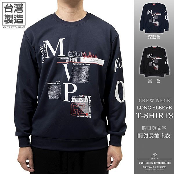 台灣製長袖T恤 英文字T恤 圓領T恤 長袖上衣 黑色T恤 羅紋布袖口長Tee Made In Taiwan Long Sleeve T-shirts Crew Neck T-Shirts (310-3778-08)深藍色、(310-3778-21)黑色 L XL (胸圍:44~47英吋 / 112~119公分) 男 [實體店面保障]sun-e
