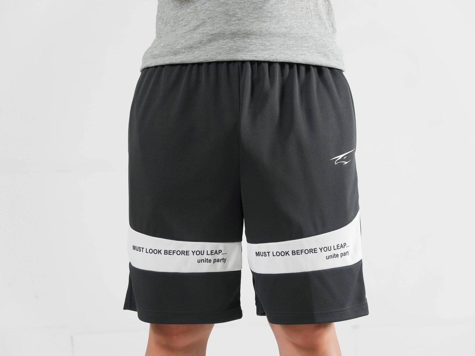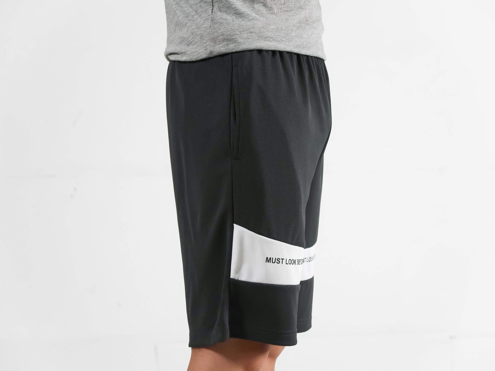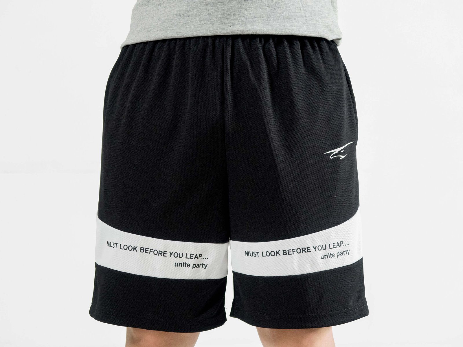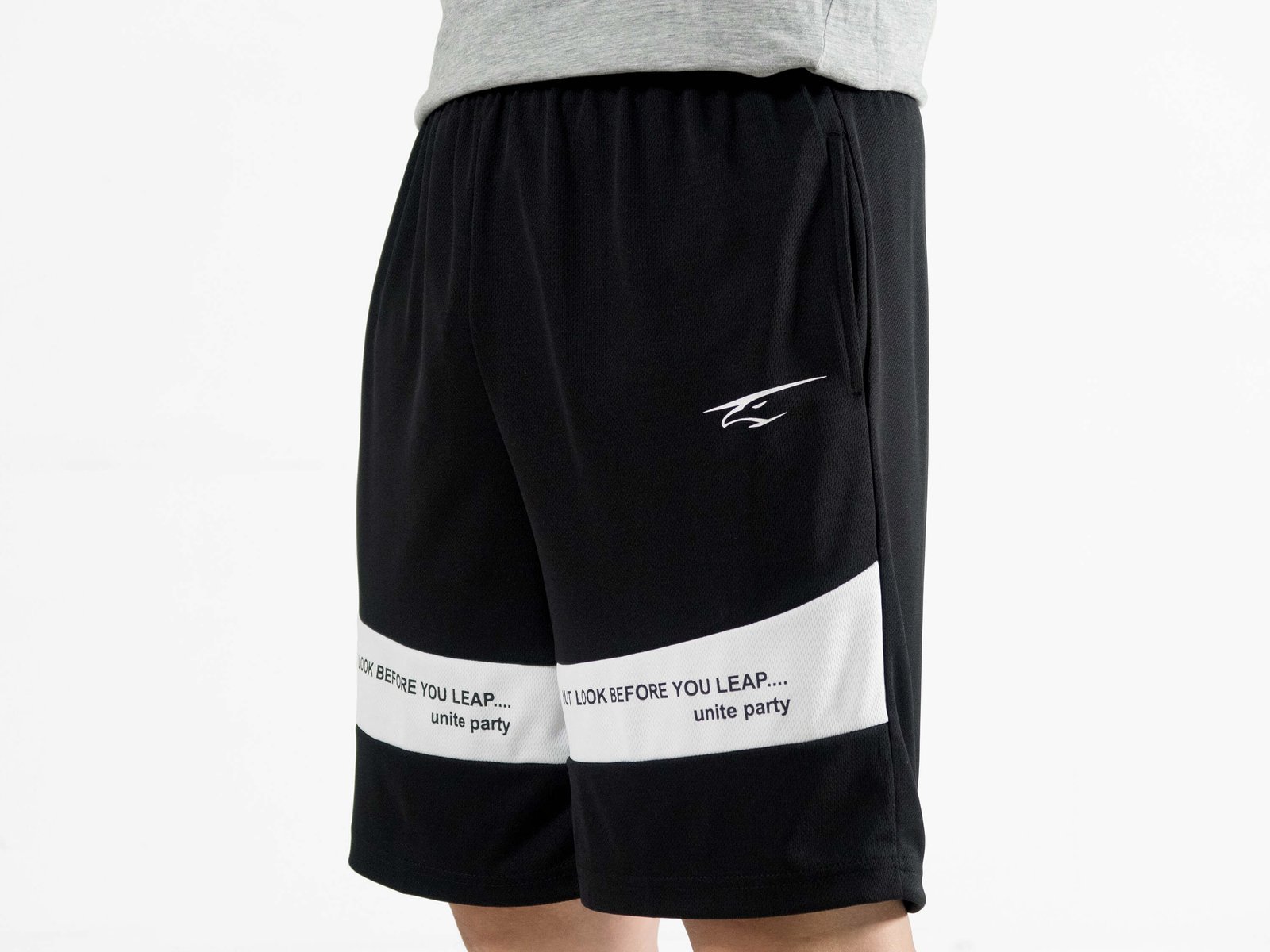 前褲管配色剪接、膠印英文字樣。