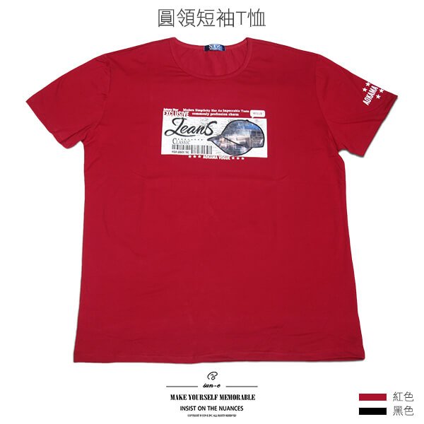 sun-e圓領短袖T恤、彈性圓領T恤、帽子圖案休閒短T、英文字T恤、紅色Tee、黑色T恤、百搭短T-shirt (312-6002-02)紅色、(312-6002-08)黑色 單一尺寸 胸圍:47英吋 [實體店面保障]