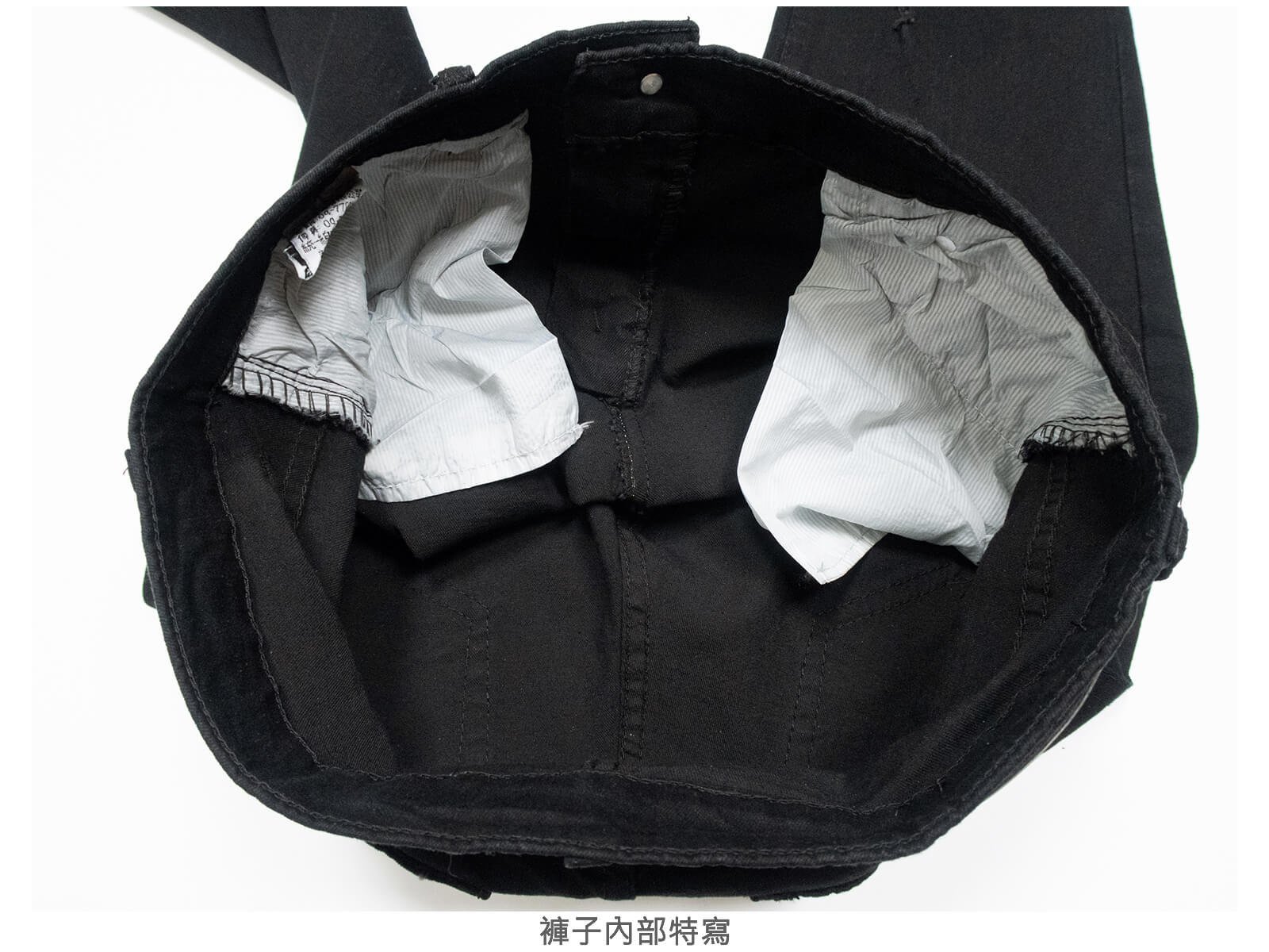腰圍有皮帶環(褲耳),褲檔有拉鍊。