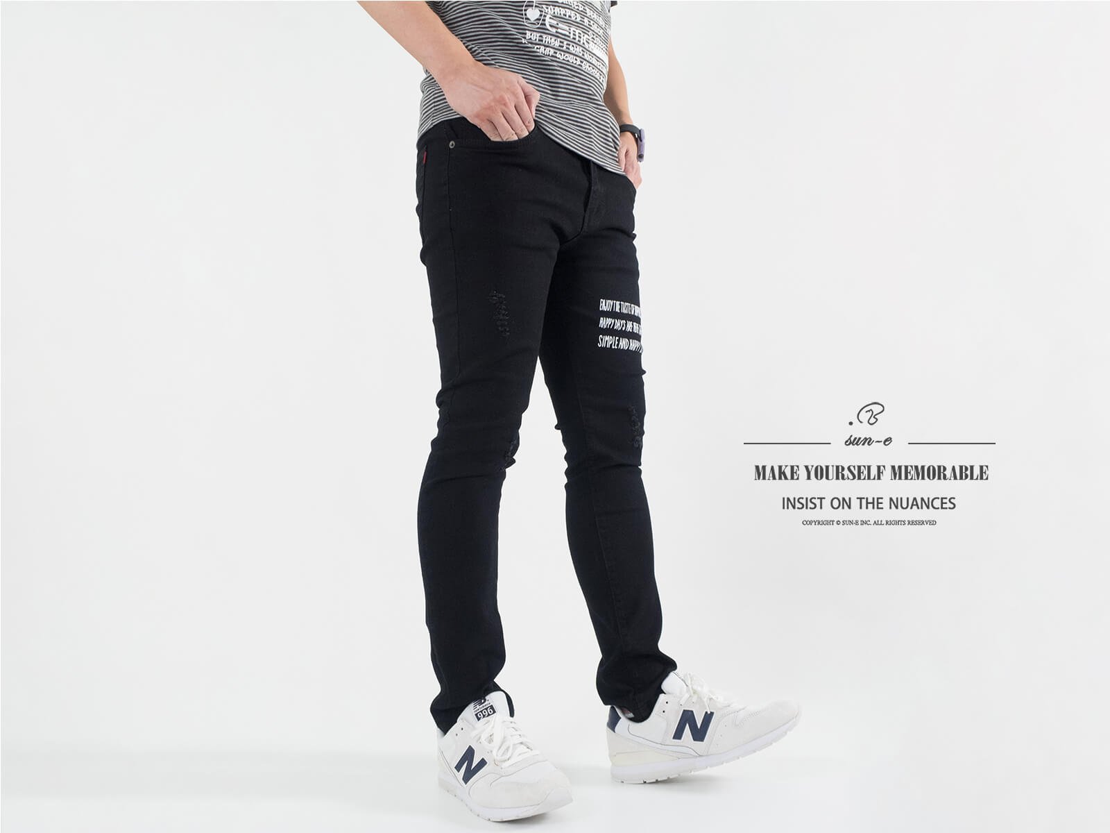 ![小直筒磨破牛仔褲 顯瘦牛仔長褲 割痕彈性牛仔褲 破洞窄管長褲 修身黑色牛仔褲 割破丹寧 褲管膠印英文字樣 Slim Fit Ripped Jeans Men's Jeans Men's Denim Pants Stretch Jeans (321-5007-21)黑色 M L XL 2L 3L (腰圍71~94公分 28~37英吋) 男 [實體店面保障] sun-e:圖片 4](https://sune1984.com/wp-content/uploads/2026/03/321-5007-21_P3.jpg)