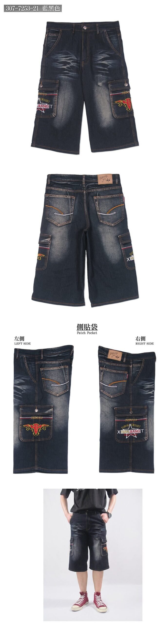 ![彈力牛仔短褲 側貼袋牛仔工作褲 多口袋時尚工作短褲 彈性丹寧短褲 車繡口袋刷白牛仔褲 口袋褲 貓爪單寧五分褲 DENIM CARGO SHORT CARGO PANTS JEAN SHORTS(307-7253-21)藍黑色 腰圍:L XL 2L 3L 4L 5L(30~41英吋) [實體店面保障] sun-e:圖片 4](https://sune1984.com/wp-content/uploads/2026/03/307-7253-21_P3-scaled.jpg)