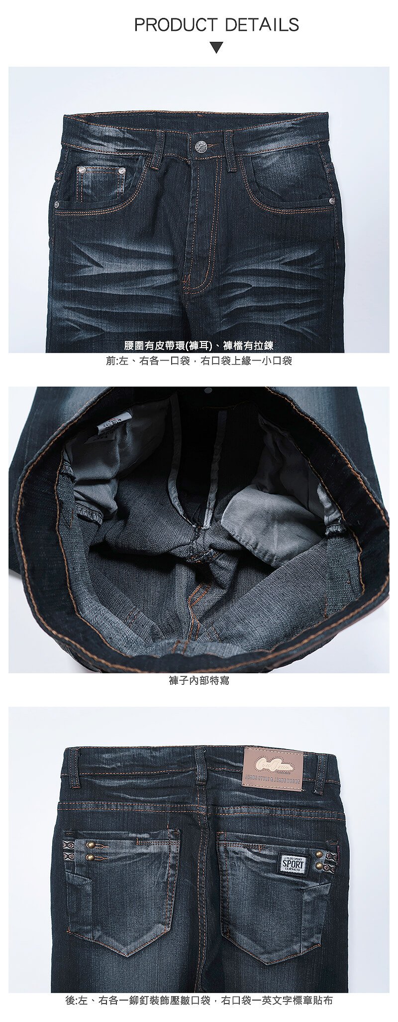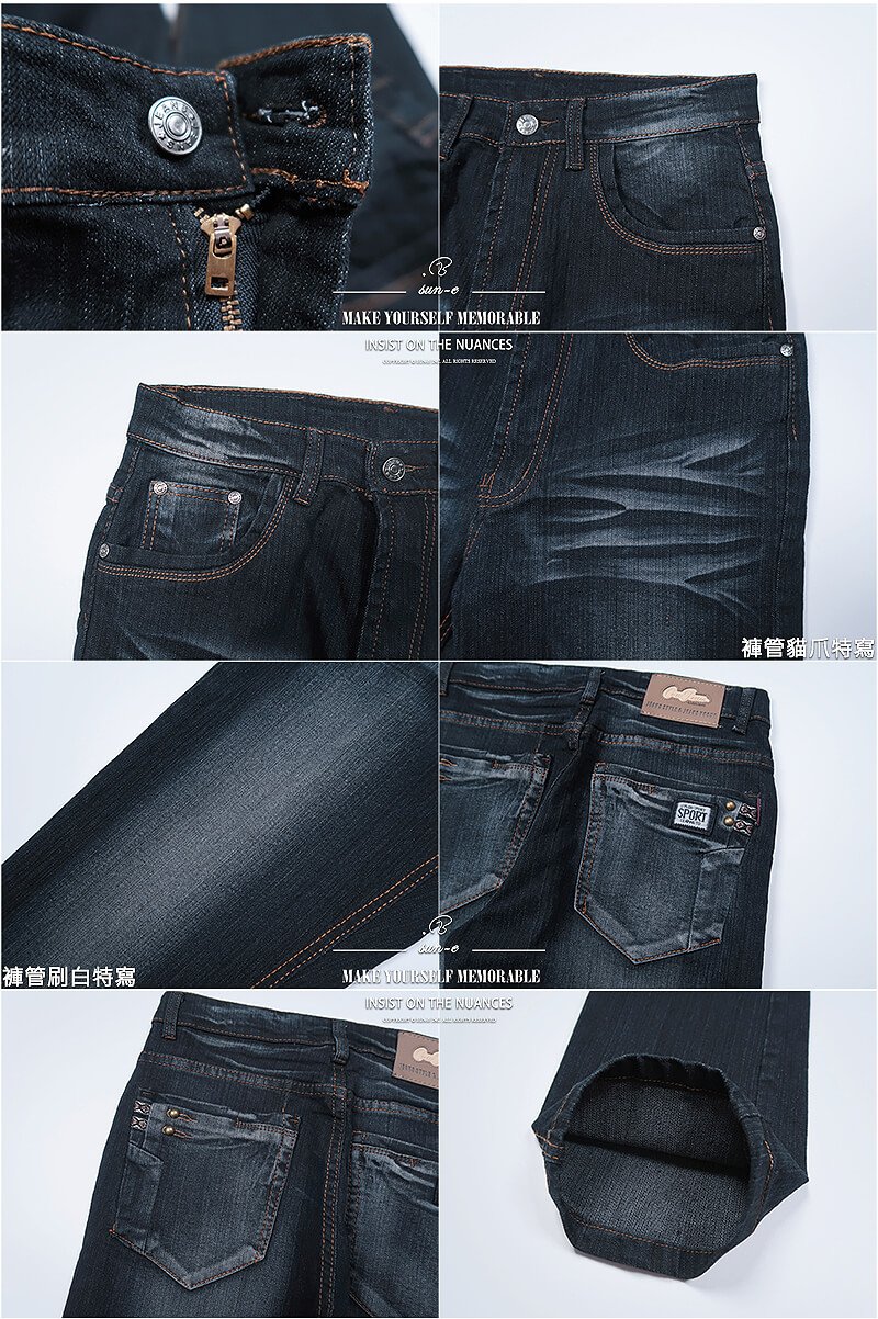 sun-e彈性伸縮中直筒牛仔褲、貓爪刷白牛仔長褲、丹寧、壓皺口袋彈性牛仔褲、單寧、Regular Fit Stretch Jeans、Denim Pants (337-2064-21)深牛仔 M L XL 2L 3L 4L 5L (腰圍:28~41英吋) 男 [實體店面保障]
