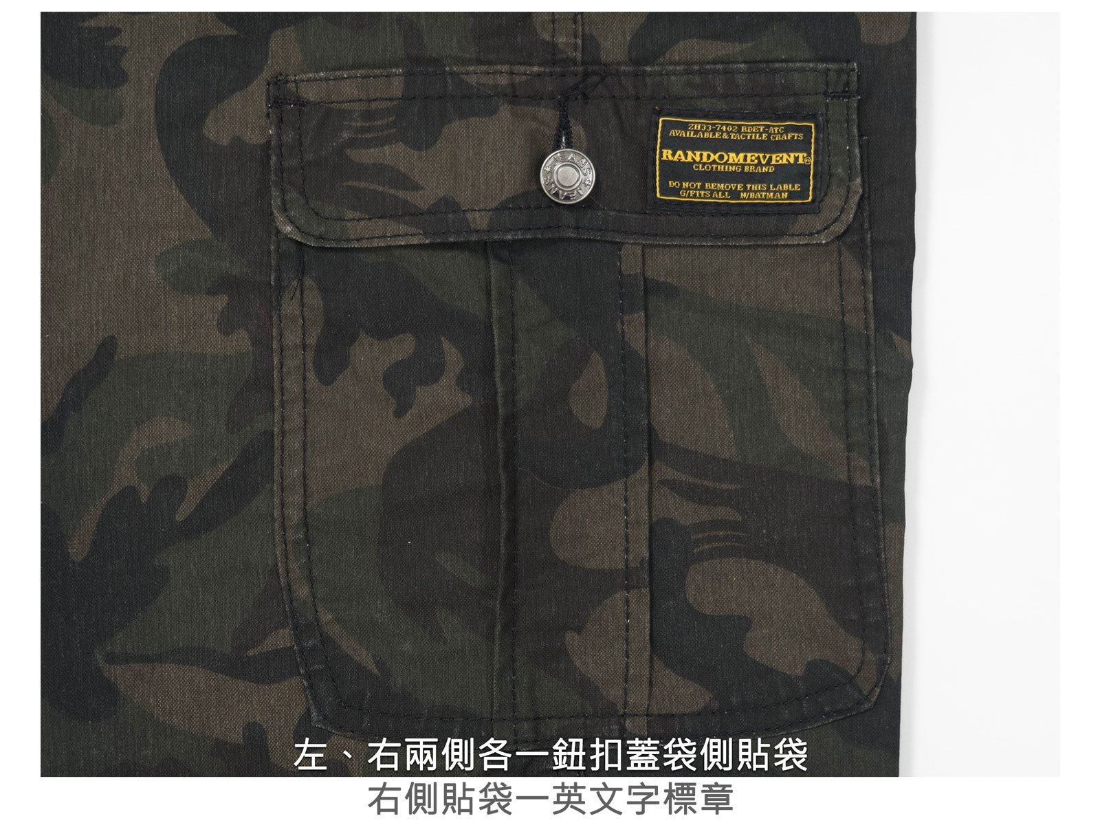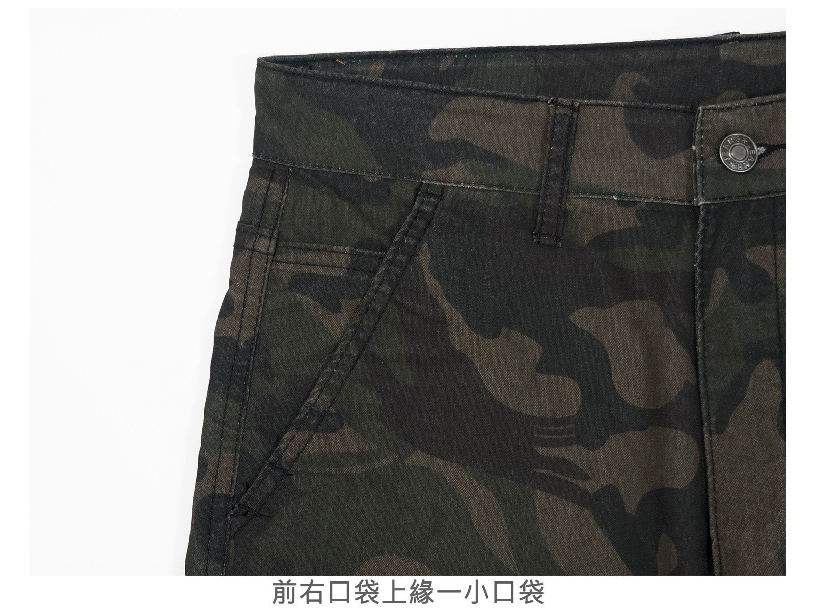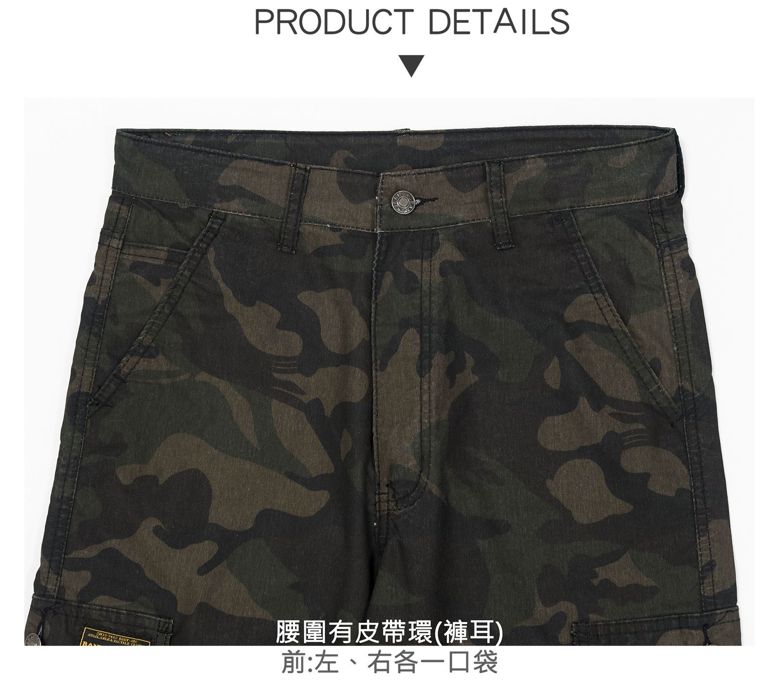 戰地迷彩七分褲,二側鈕扣側袋,
