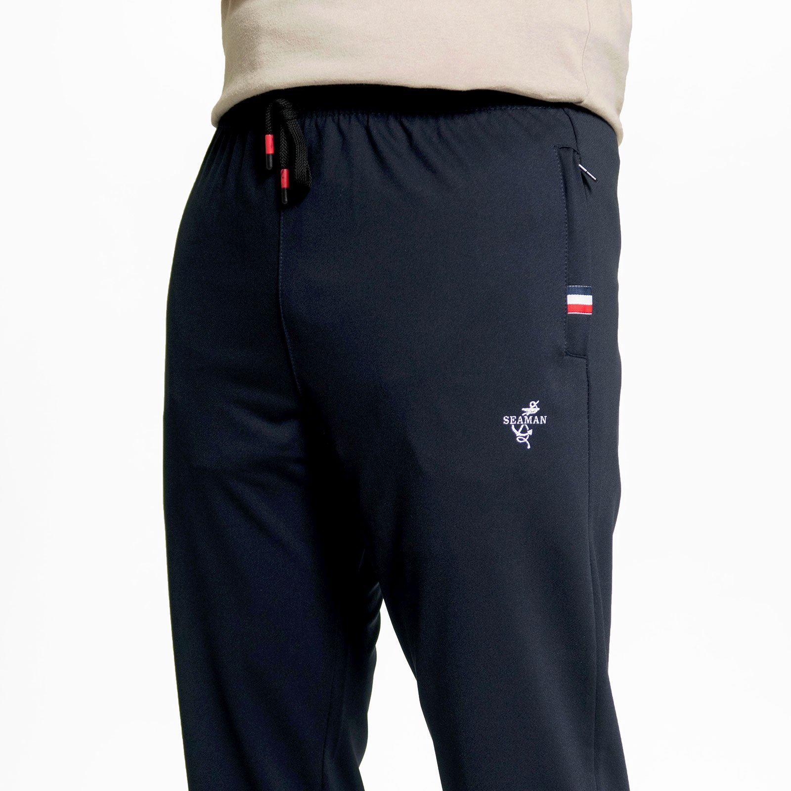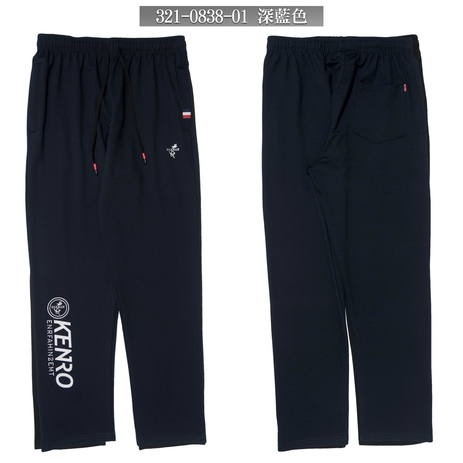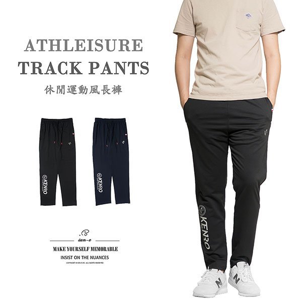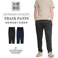 sun-e休閒運動風長褲、拉鍊口袋運動褲、全腰圍鬆緊帶休閒褲、褲管無束口運動長褲、Athleisure Track Pants、膠印圖樣休閒長褲、黑色長褲、Sports Pants、Casual Pants (321-0838-01)深藍色、(321-0838-02)黑色 M L XL 2L (腰圍:26~37英吋/66~94公分) 男 [實體店面保障]