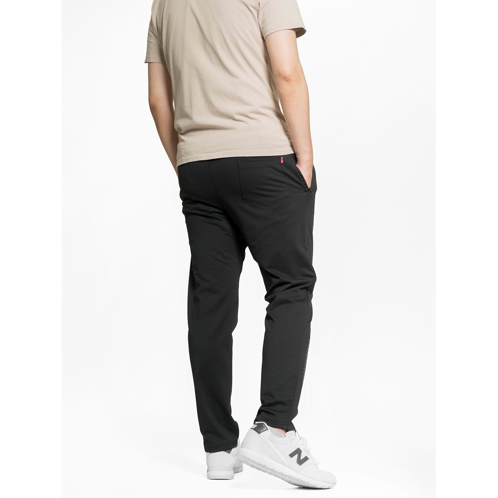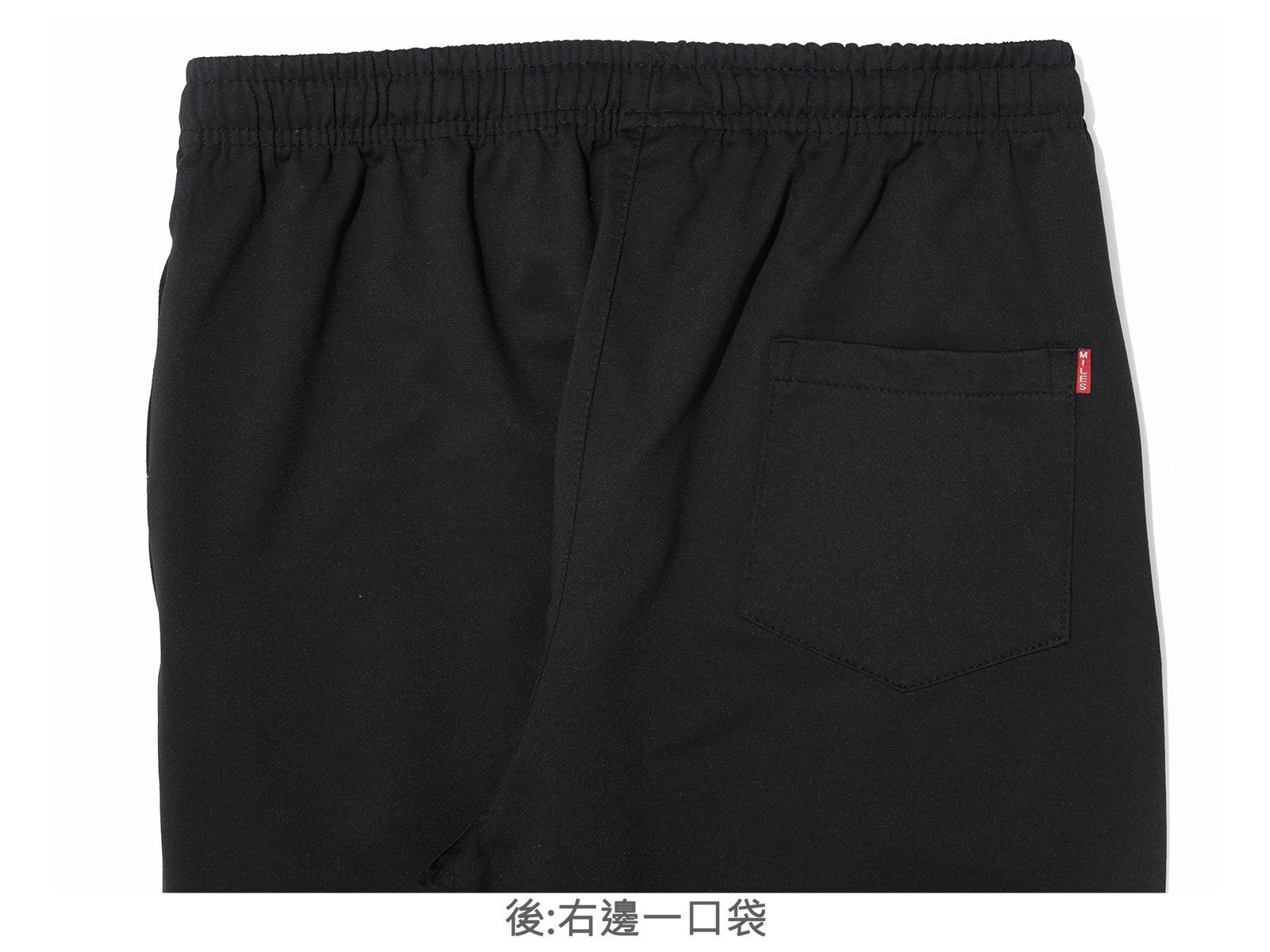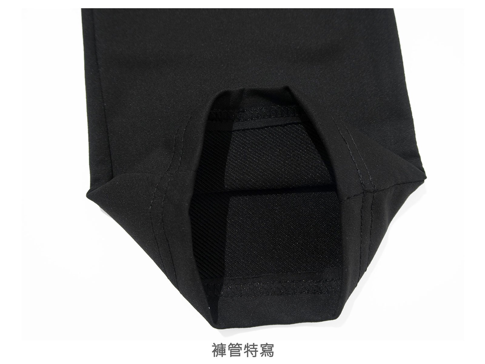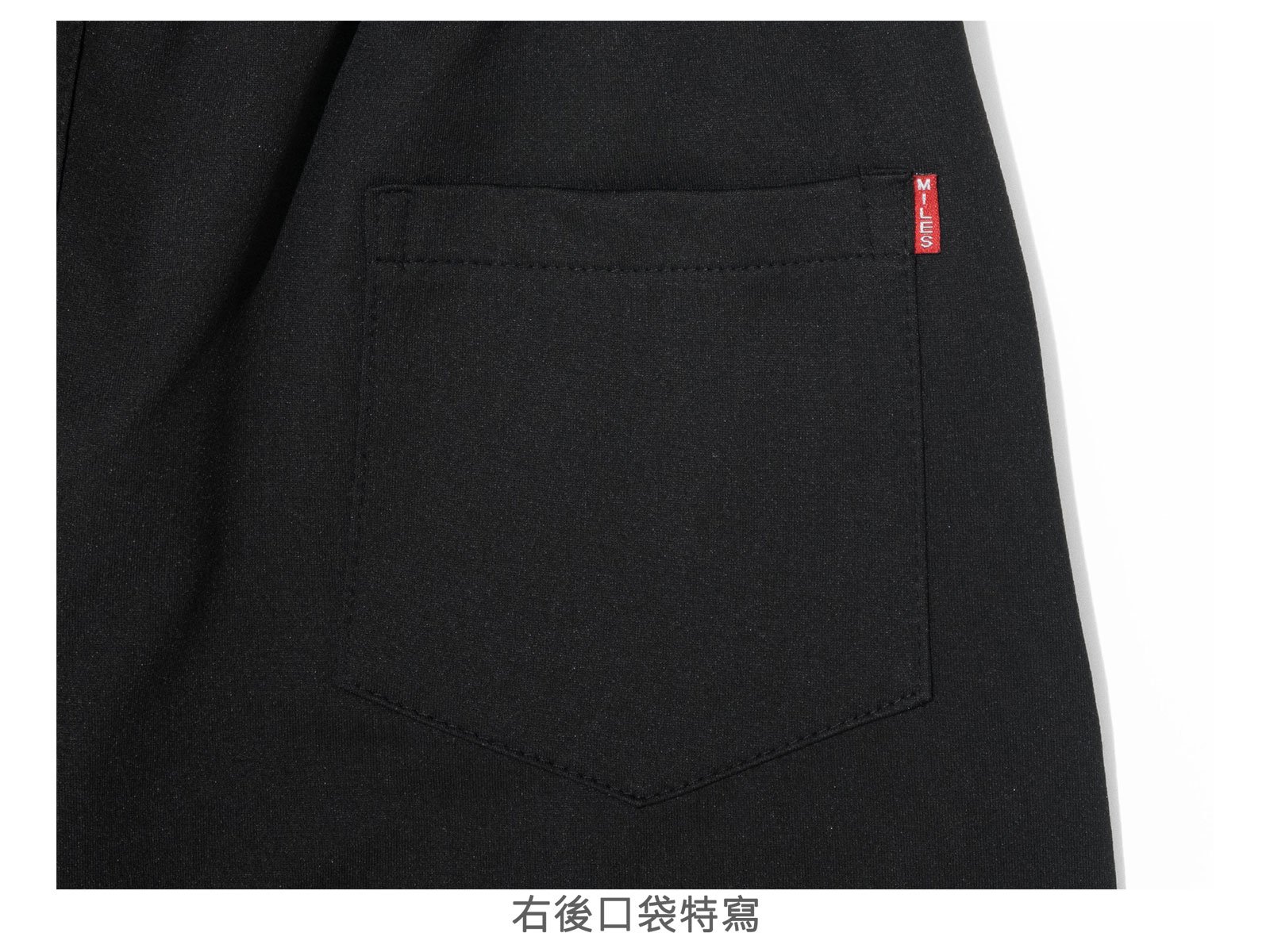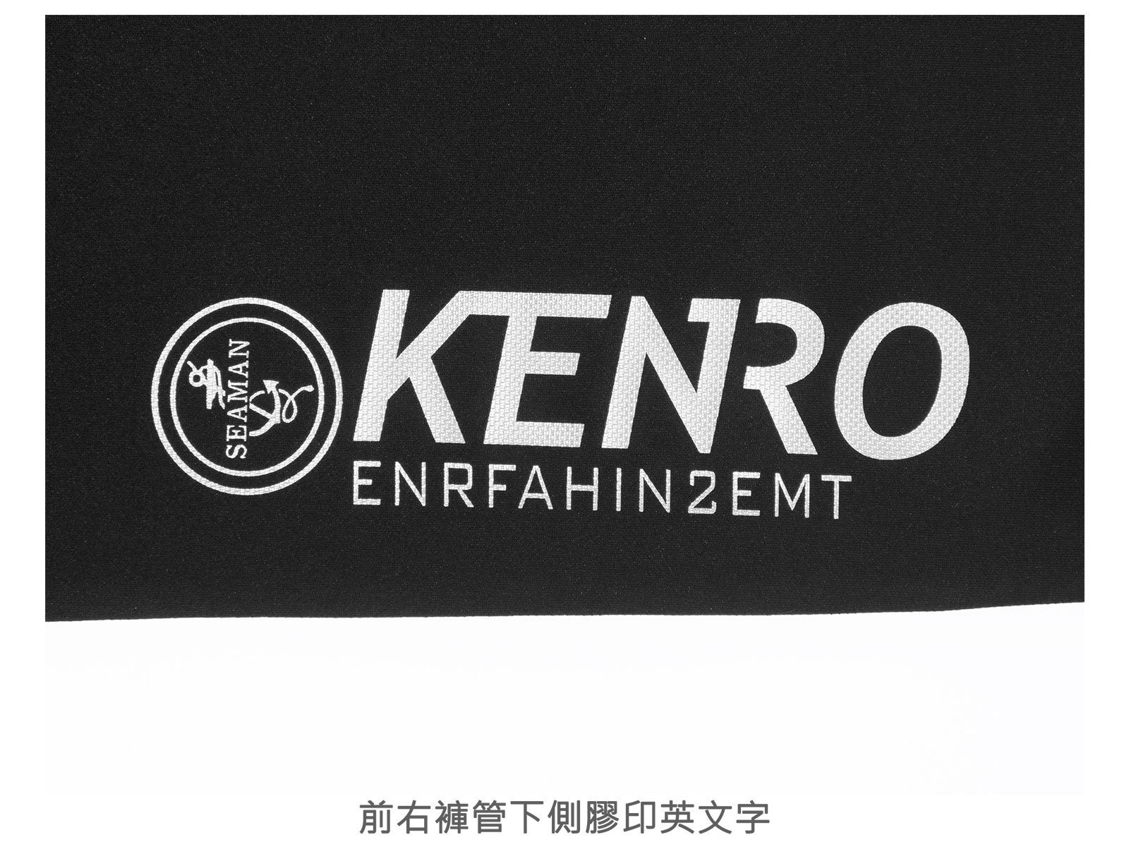 前右褲管下側膠印英文字。