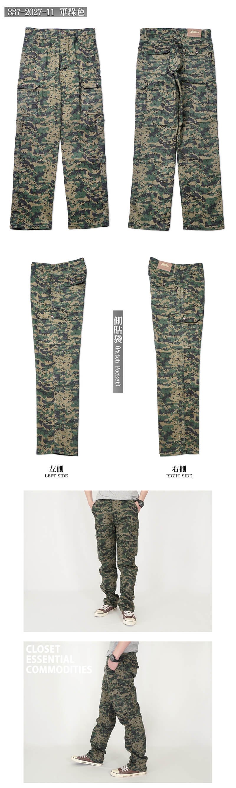 sun-e時尚迷彩工作褲、彈性休閒迷彩褲、多口袋中直筒長褲、側貼袋工作長褲、牛仔版型迷彩長褲、口袋褲、工裝褲、CARGO PANTS (337-2026-21)灰色、(337-2027-11)軍綠色 腰圍:M L XL 2L 3L 4L 5L(28~41英吋) [實體店面保障]
