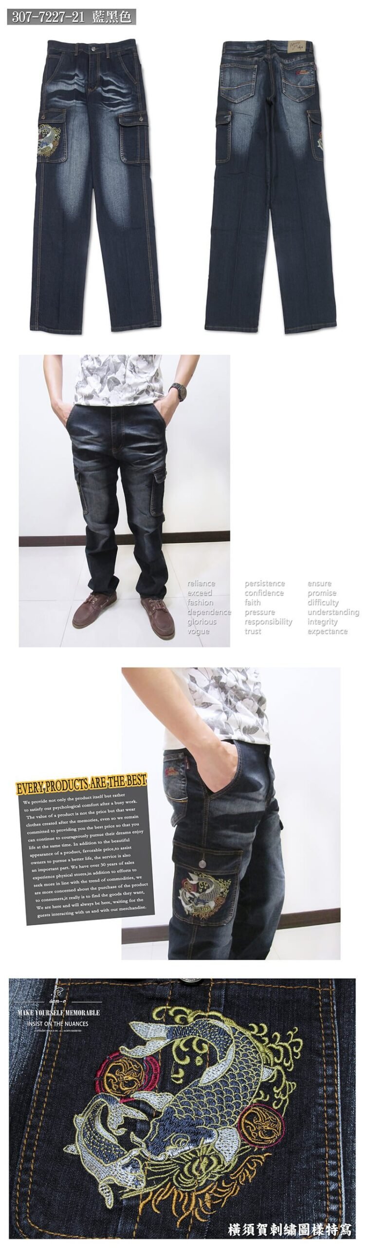 ![橫須賀刺繡 側貼袋 彈性 中直筒牛仔褲 鯉魚車繡 多口袋工作褲 後車繡口袋丹寧 貓爪 刷白牛仔長褲 JEANS DENIM (307-7227-21)藍黑色 M L XL 2L 3L 4L 5L 腰圍:28~41(英吋) [實體店面保障] sun-e:圖片 6](https://sune1984.com/wp-content/uploads/2026/03/307-7227-21_P6.jpg)