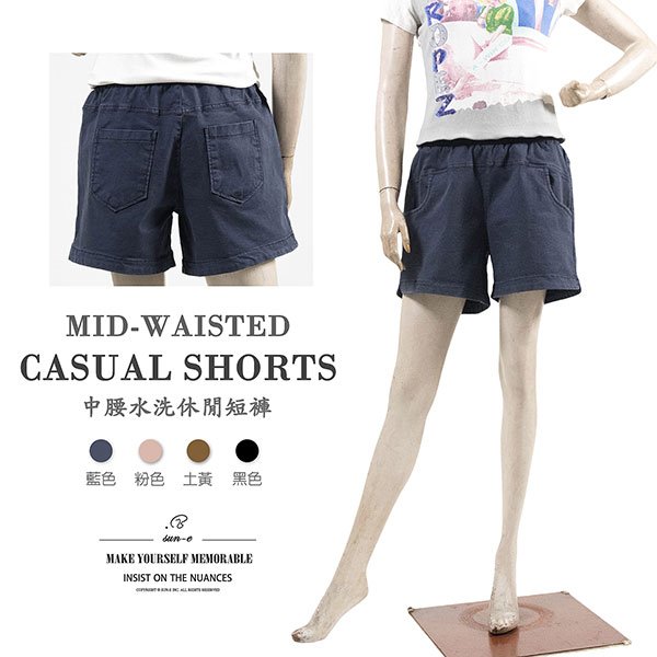 ![水洗休閒短褲 中腰超彈力短褲 鬆緊腰休閒褲 素面短褲 黑色短褲 Mid-Waisted Casual Shorts Elastic Waist Shorts (012-4319-06)粉色、(012-4319-08)藍色、(012-4319-15)土黃、(012-4319-21)黑色 M L (腰圍:28~33英吋 / 71~84公分) 女 [實體店面保障] sun-e:圖片 2](https://sune1984.com/wp-content/uploads/2026/03/012-4319_P1.jpg)