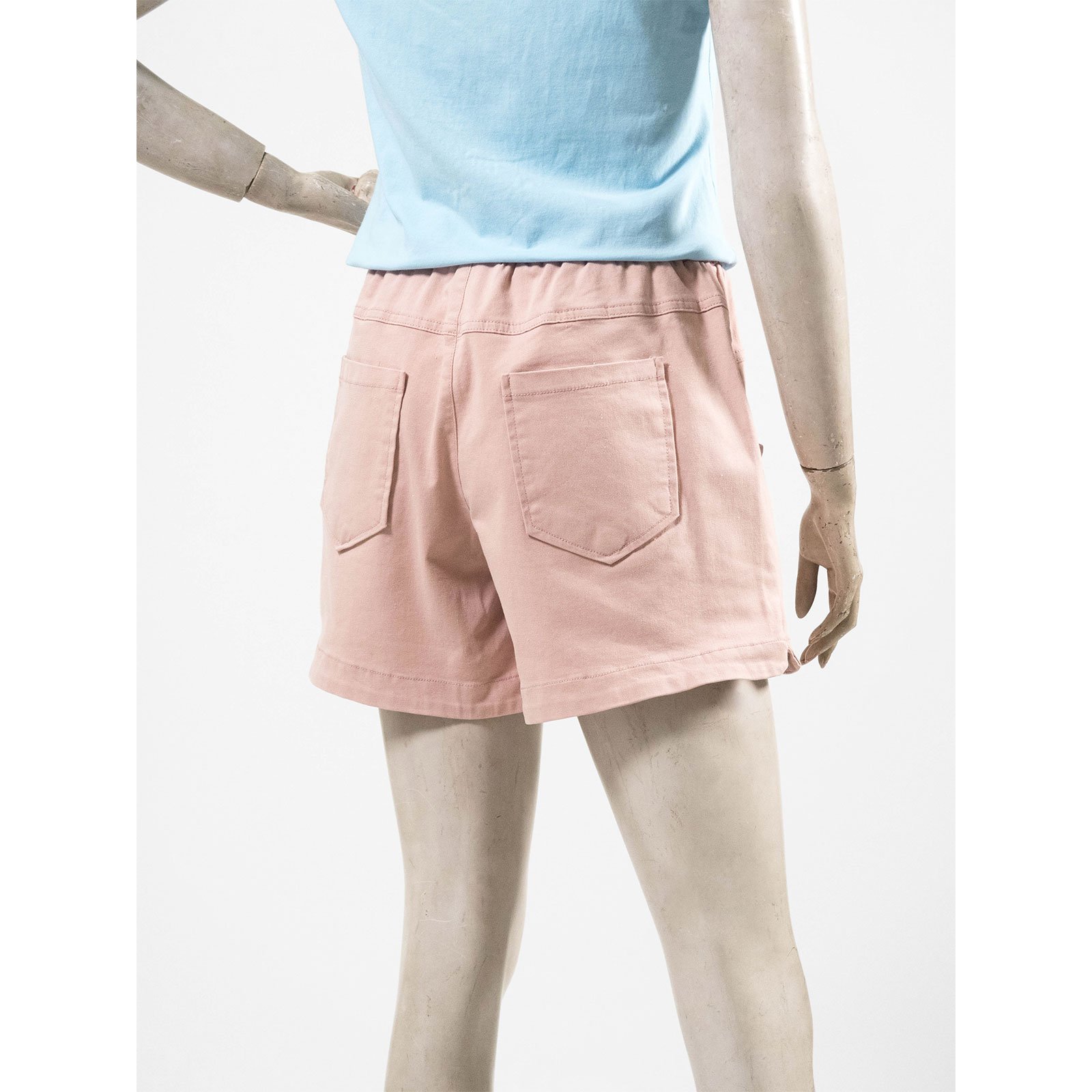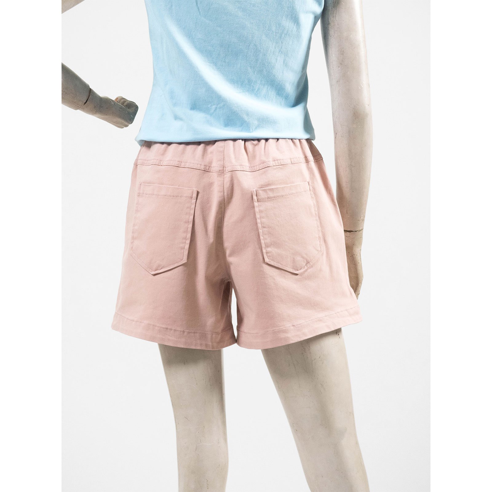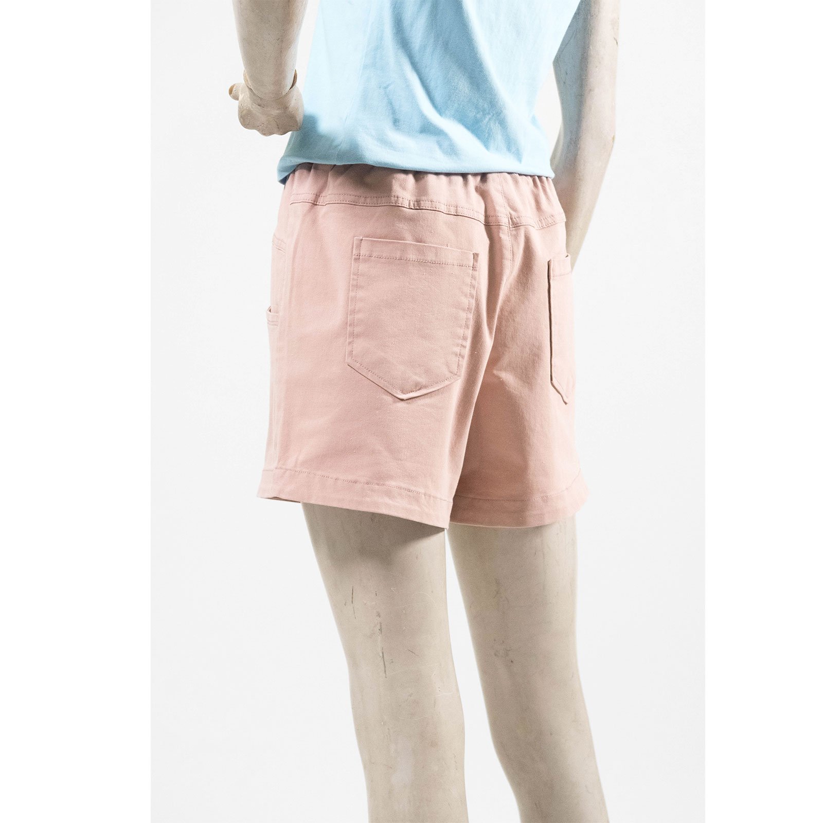 水洗休閒短褲 中腰超彈力短褲 鬆緊腰休閒褲 素面短褲 黑色短褲 Mid-Waisted Casual Shorts Elastic Waist Shorts (012-4319-06)粉色、(012-4319-08)藍色、(012-4319-15)土黃、(012-4319-21)黑色 M L (腰圍:28~33英吋 / 71~84公分) 女 [實體店面保障] sun-e