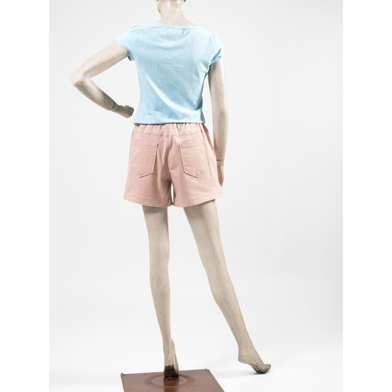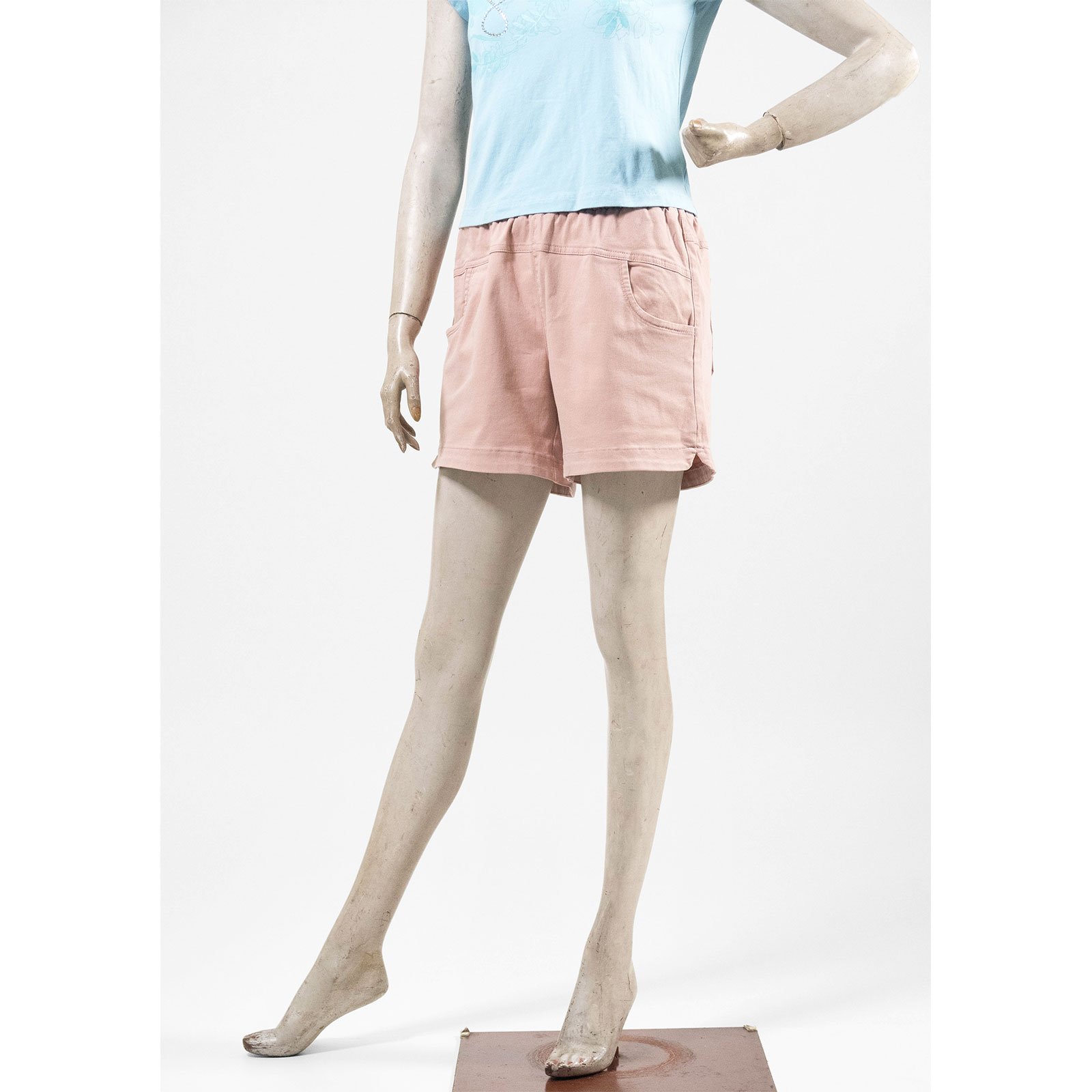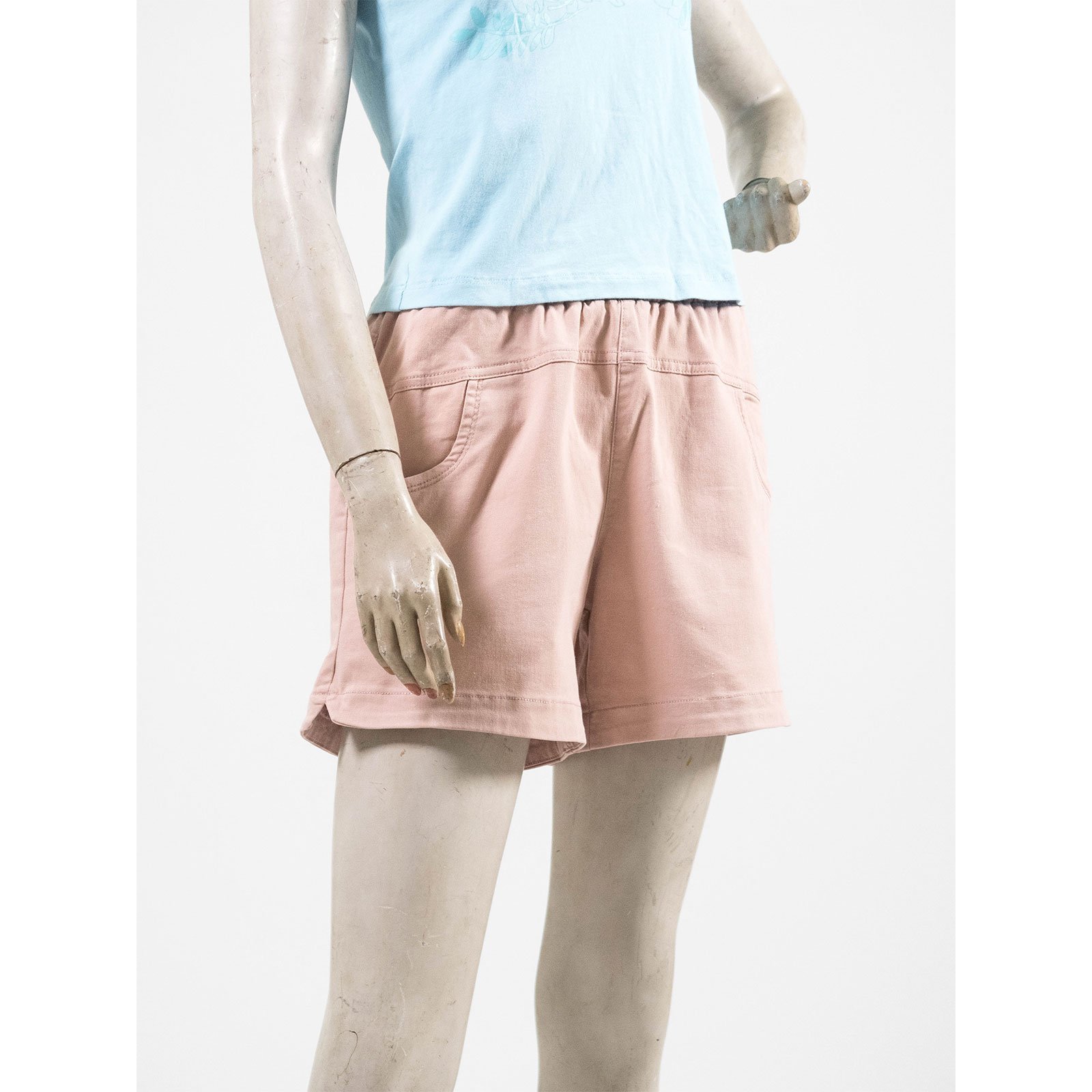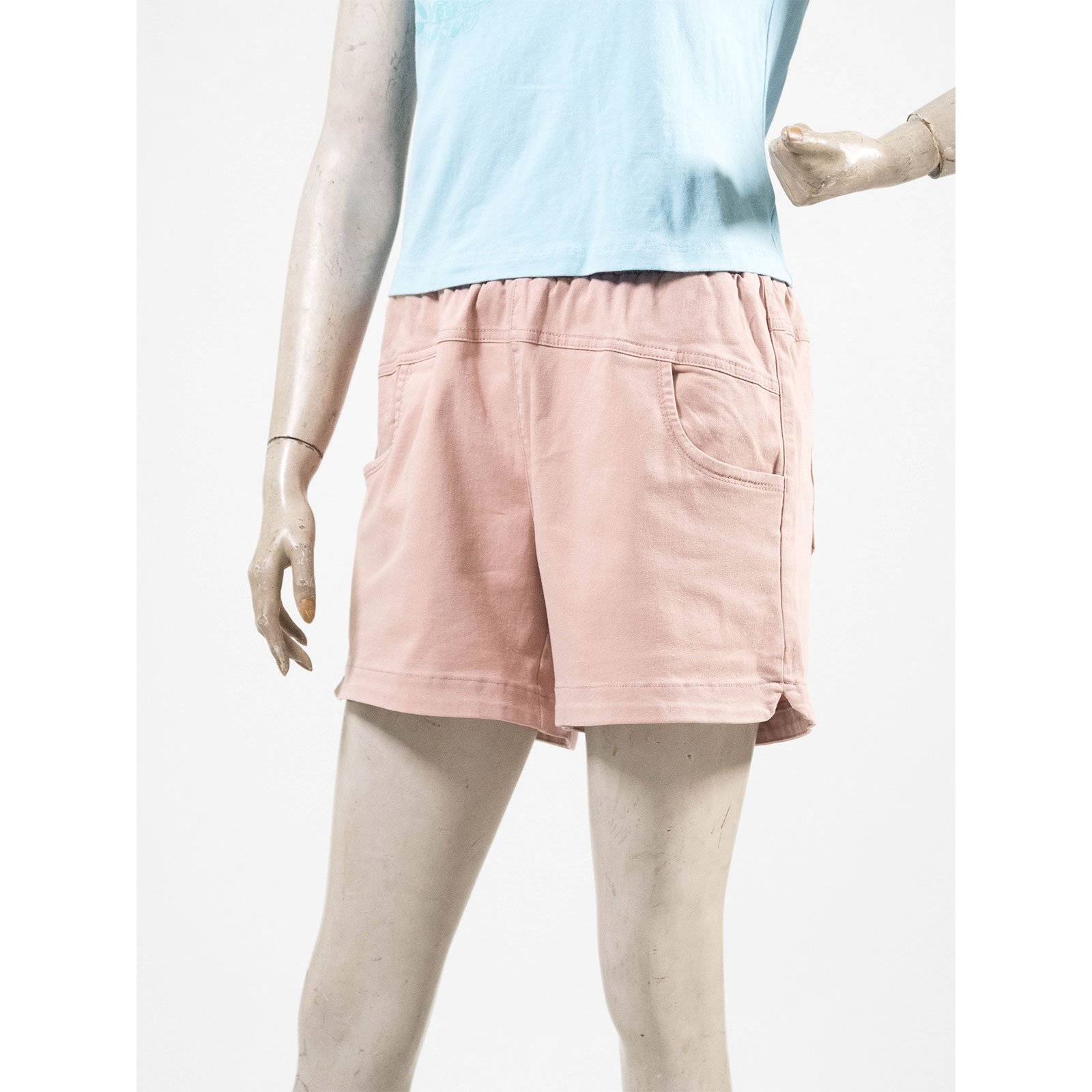 水洗休閒短褲 中腰超彈力短褲 鬆緊腰休閒褲 素面短褲 黑色短褲 Mid-Waisted Casual Shorts Elastic Waist Shorts (012-4319-06)粉色、(012-4319-08)藍色、(012-4319-15)土黃、(012-4319-21)黑色 M L (腰圍:28~33英吋 / 71~84公分) 女 [實體店面保障] sun-e