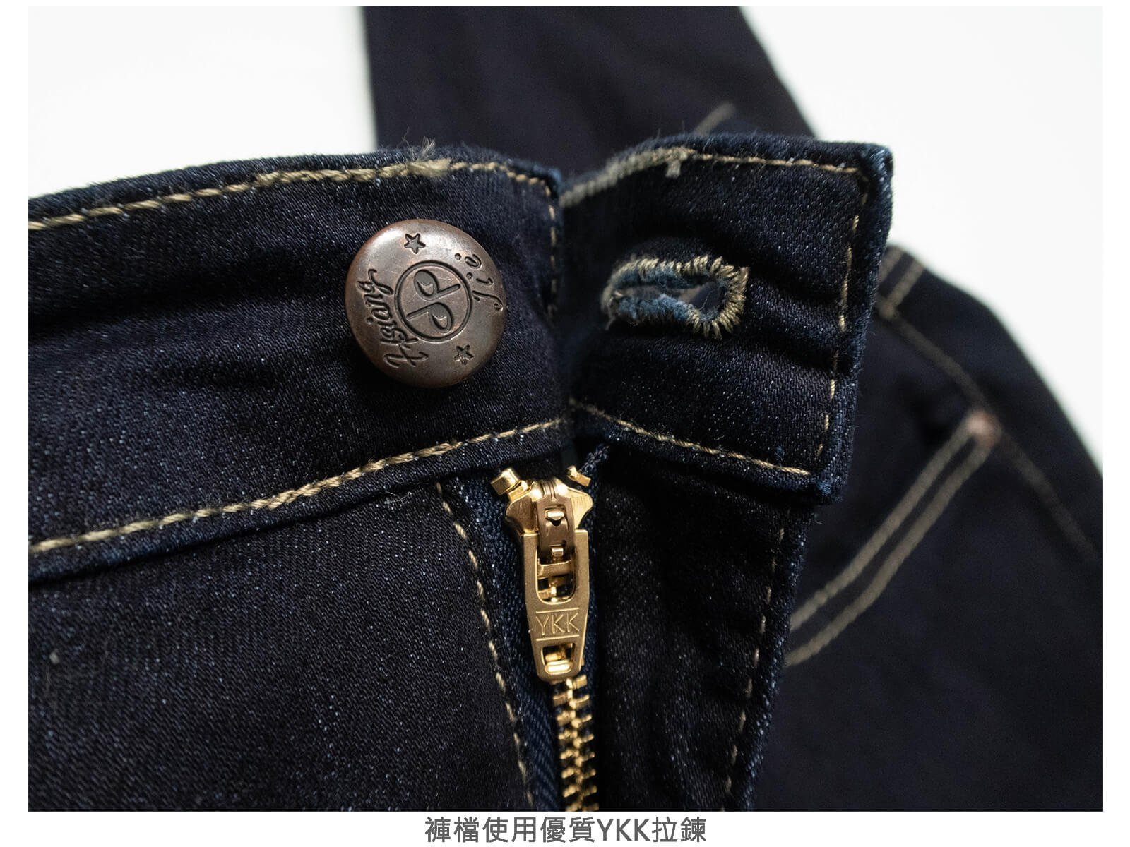 腰圍有皮帶環(褲耳),褲檔使用優質YKK拉鍊。