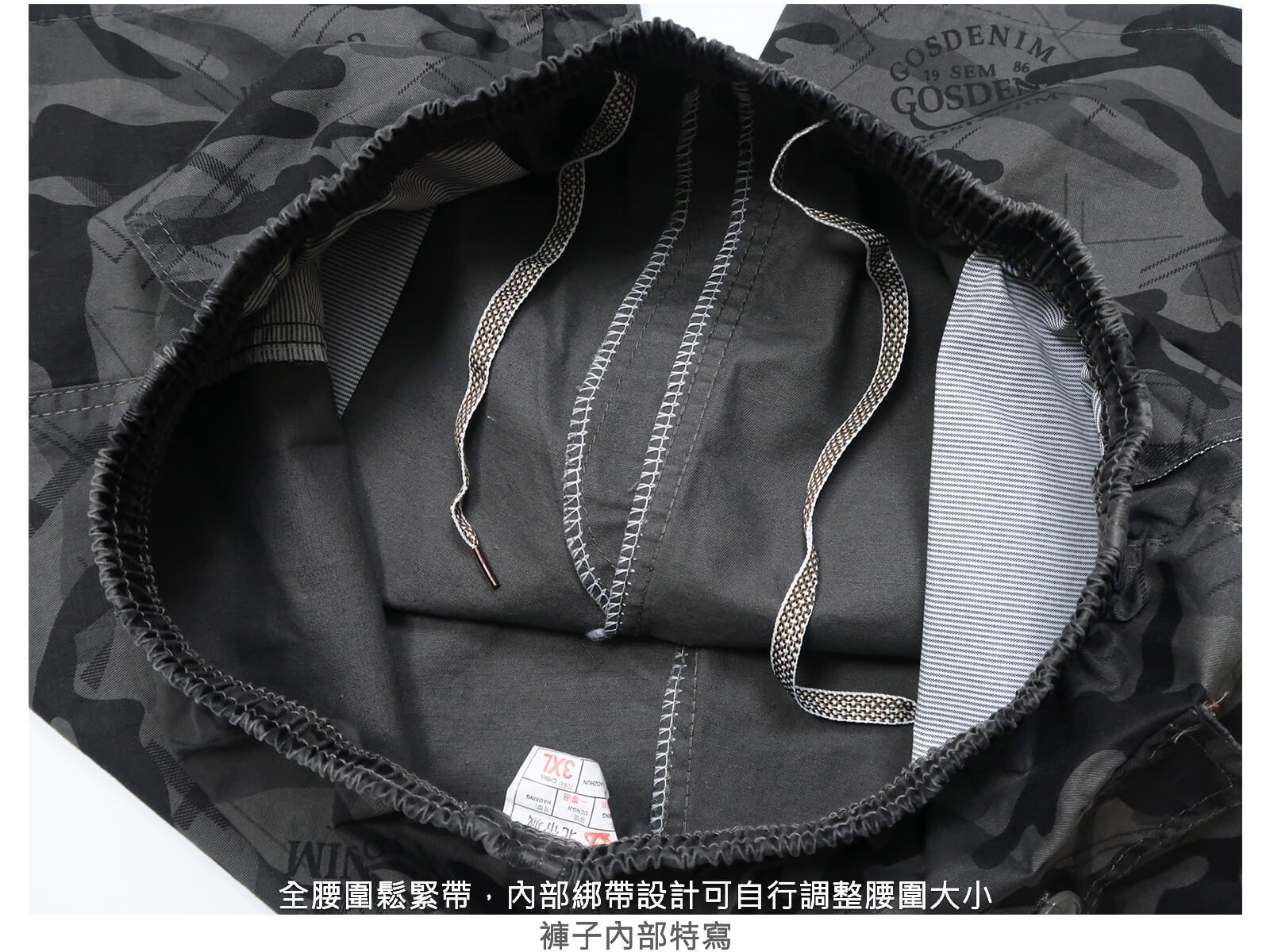 全腰圍鬆緊帶,腰圍內部綁帶設計可自行調整大小。
