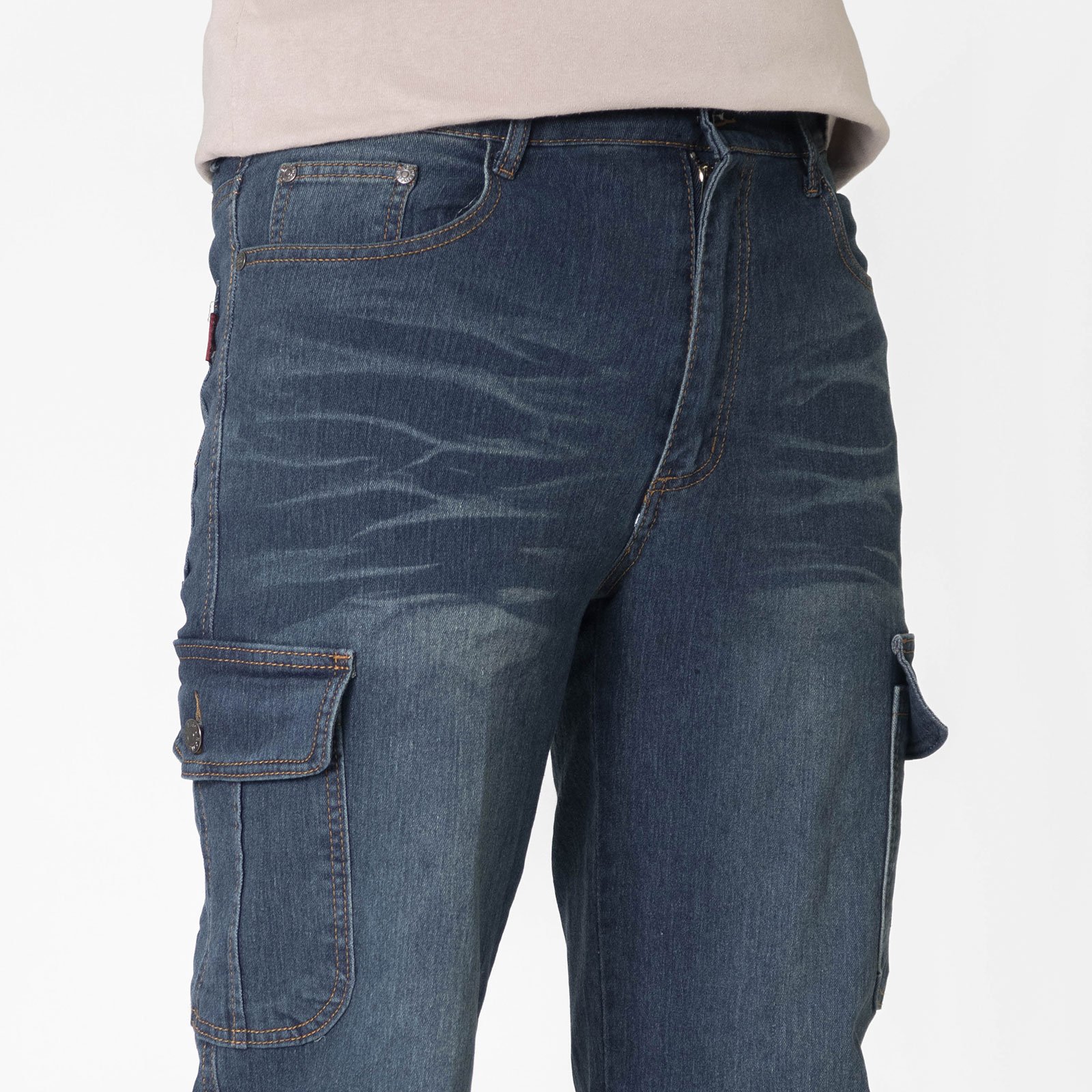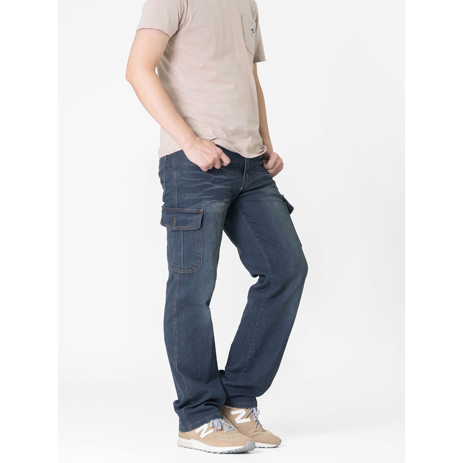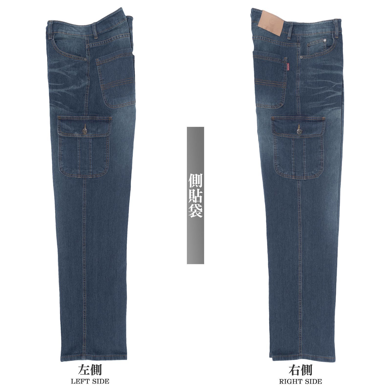 sun-e牛仔工作褲、中直筒彈性牛仔褲、丹寧側袋褲、多口袋工作長褲、刷白牛仔長褲、工裝褲、直筒褲、口袋褲、車繡後口袋側貼袋長褲、Cargo Jeans、Denim Cargo Pants、Regular Fit Jeans、Embroidered Pockets (347-3103-34)牛仔色 L XL 2L 3L 4L (腰圍:30~39英吋/76~99公分) 男 [實體店面保障]