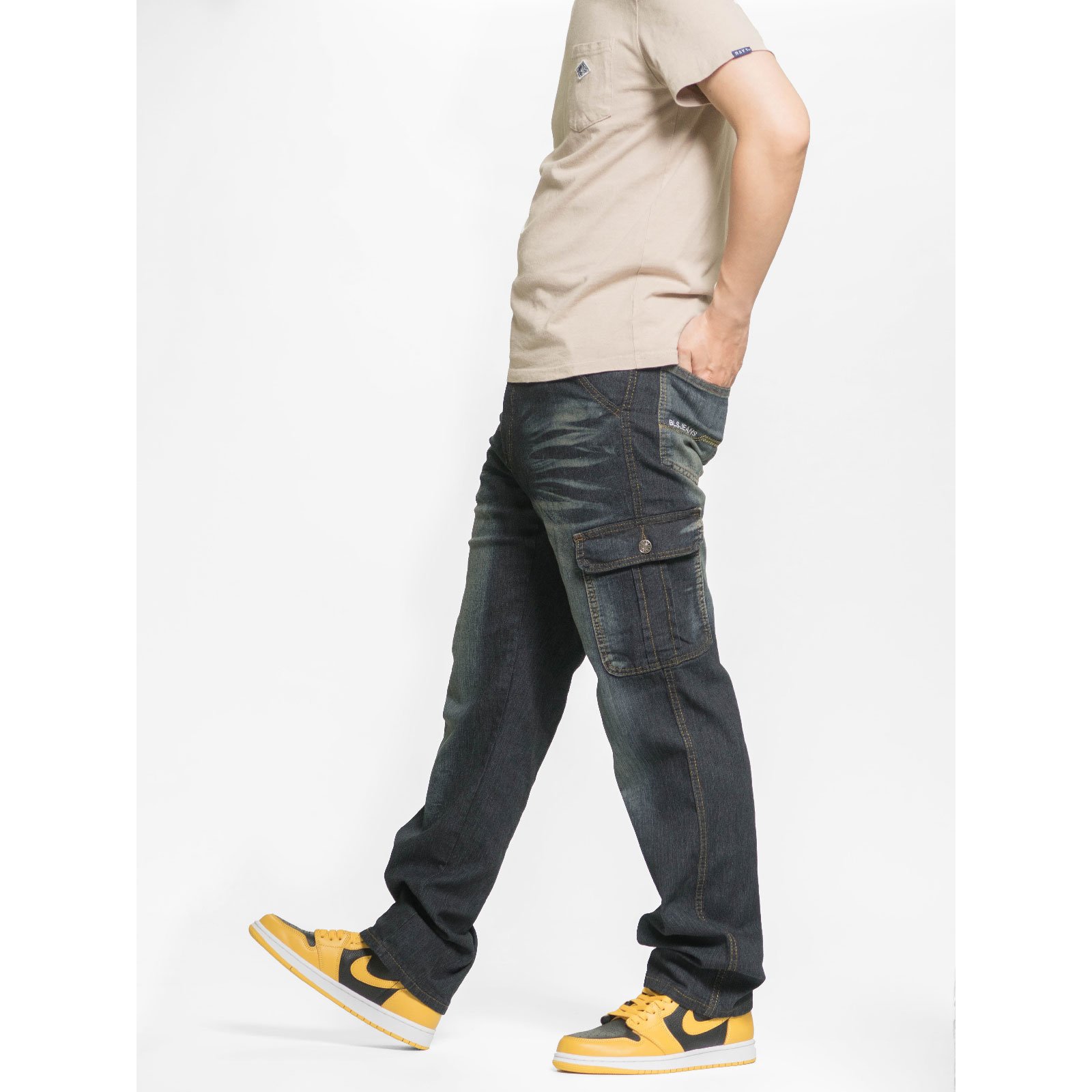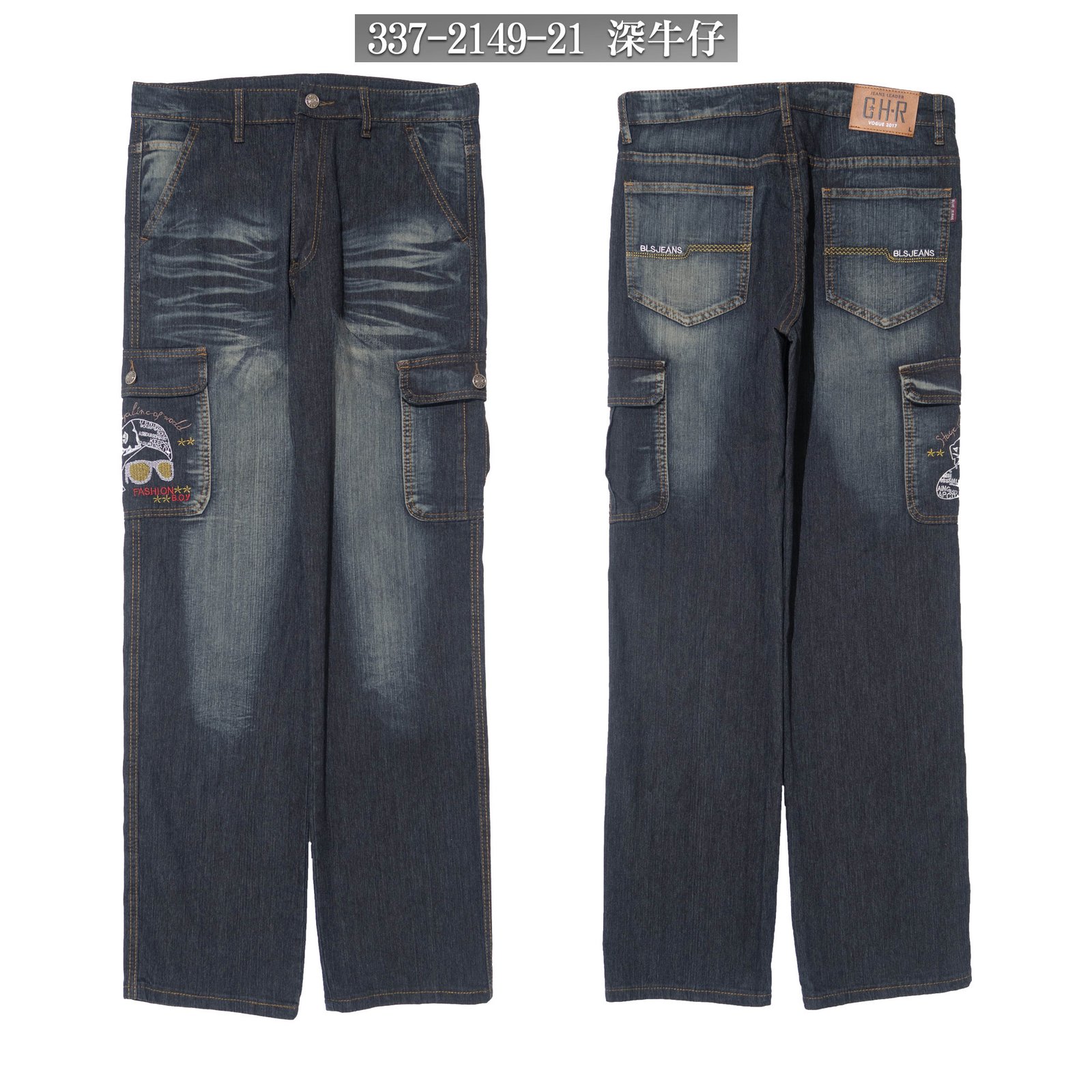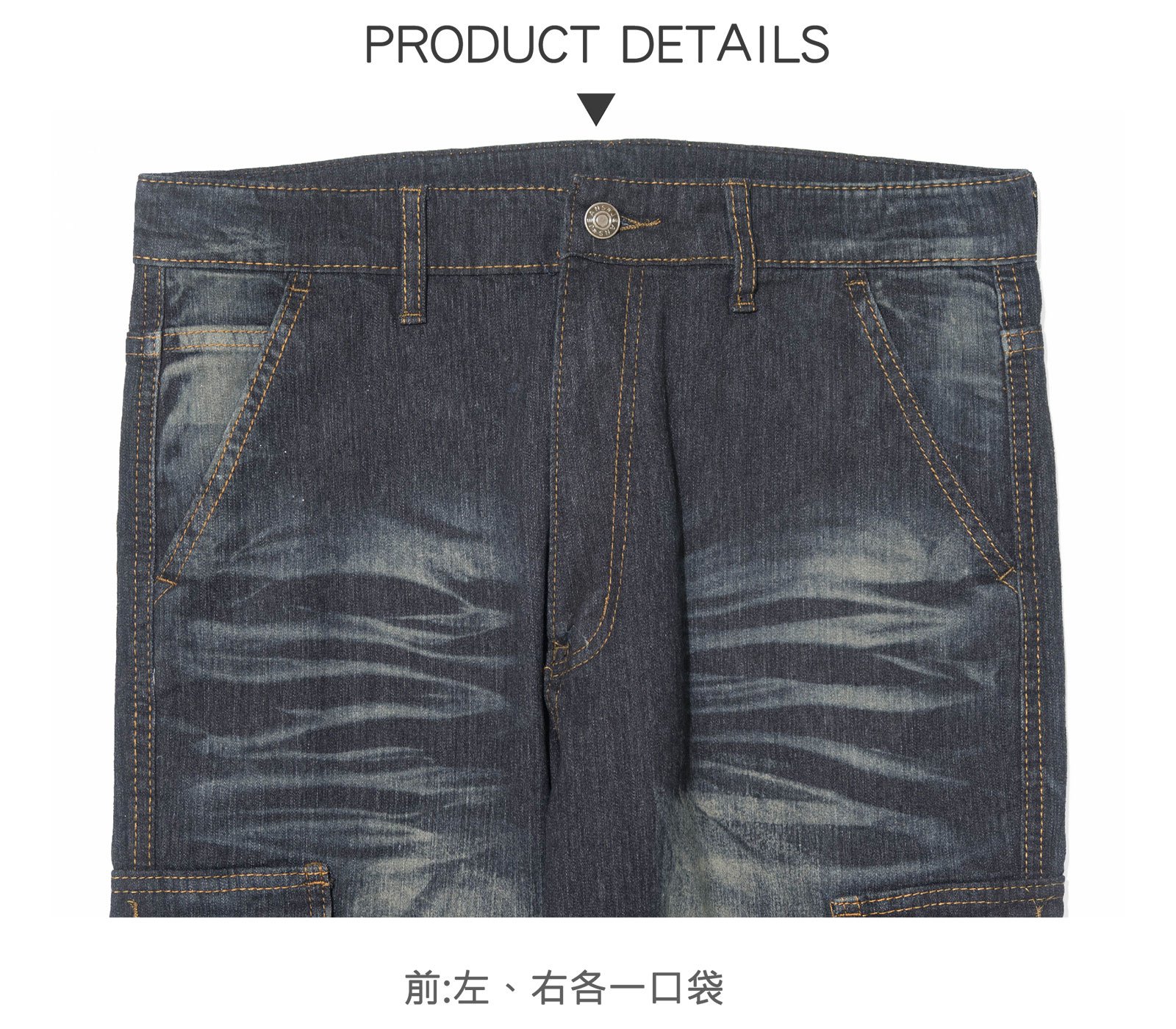 sun-e牛仔工作褲、中直筒彈性牛仔褲、丹寧側袋褲、多口袋工作長褲、刷白牛仔長褲、工裝褲、直筒褲、口袋褲、車繡口袋側貼袋長褲、Cargo Jeans、Denim Cargo Pants、Regular Fit Jeans、Embroidered Pockets Stretch Jeans (337-2149-21)牛仔色 M L XL 2L 3L 4L 5L (腰圍:28~41英吋/71~104公分) 男 [實體店面保障]