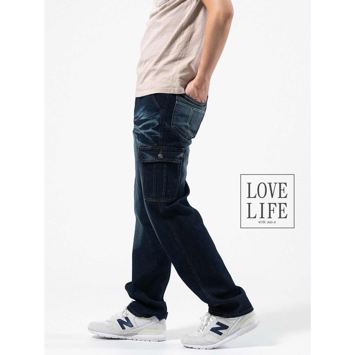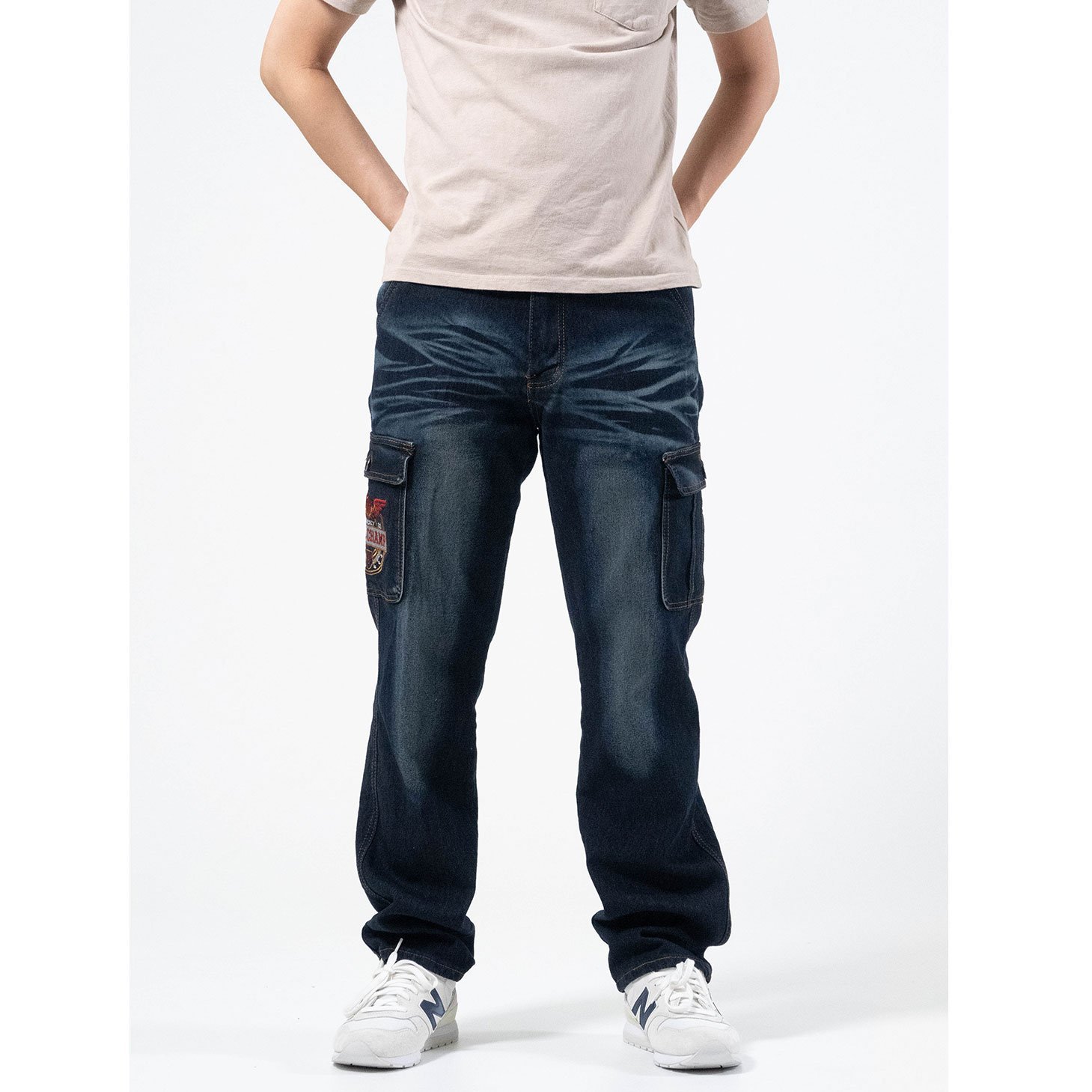 sun-e牛仔工作褲、直筒牛仔褲、工裝褲、丹寧側袋褲、牛仔長褲、工作長褲、多口袋直筒褲、貓爪刷白側貼袋長褲、老鷹車繡側貼袋、口袋褲、Cargo Jeans、Denim Cargo Pants、Regular Fit Jeans、Embroidered Pockets (307-7463-21)深牛仔 L XL 2L 3L 4L 5L (腰圍:28~41英吋/71~104公分) 男 [實體店面保障]