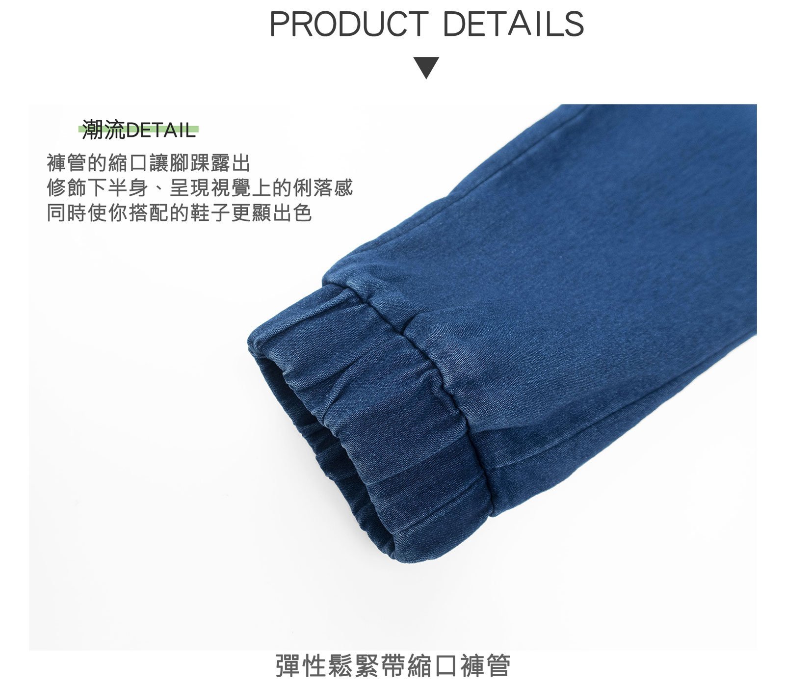 彈性鬆緊帶縮口褲管。