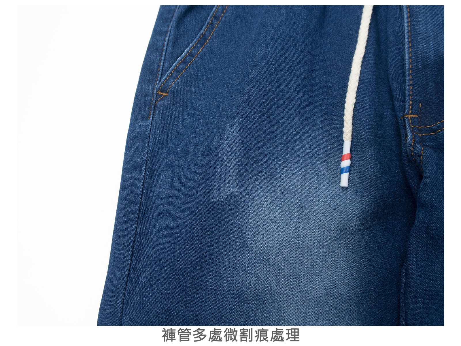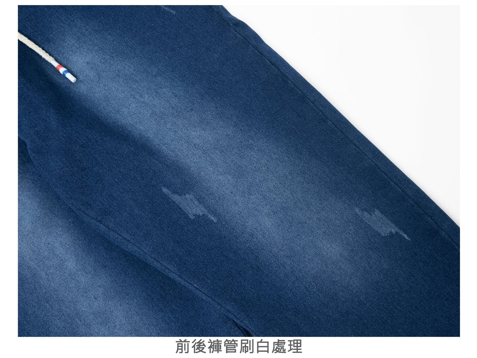 褲身前後刷白處理,伸縮有彈性。