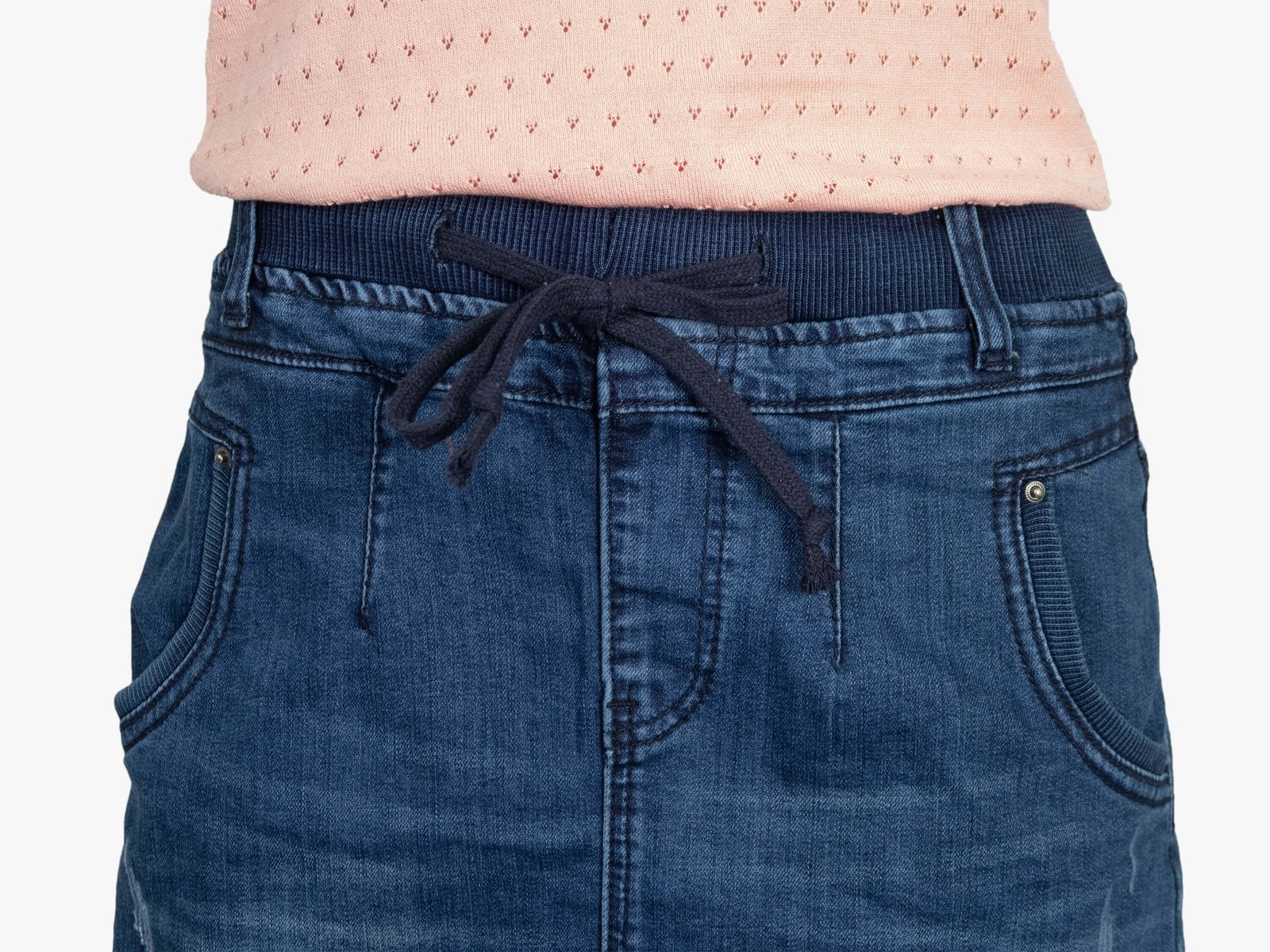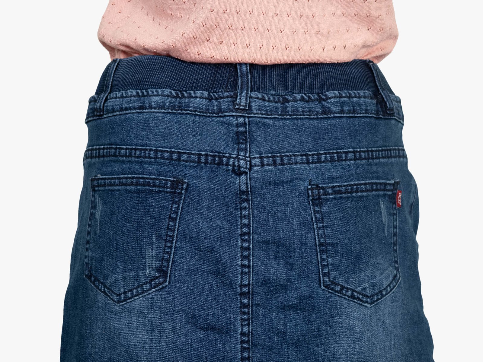 腰圍有皮帶環(褲耳),褲檔沒有拉鍊。