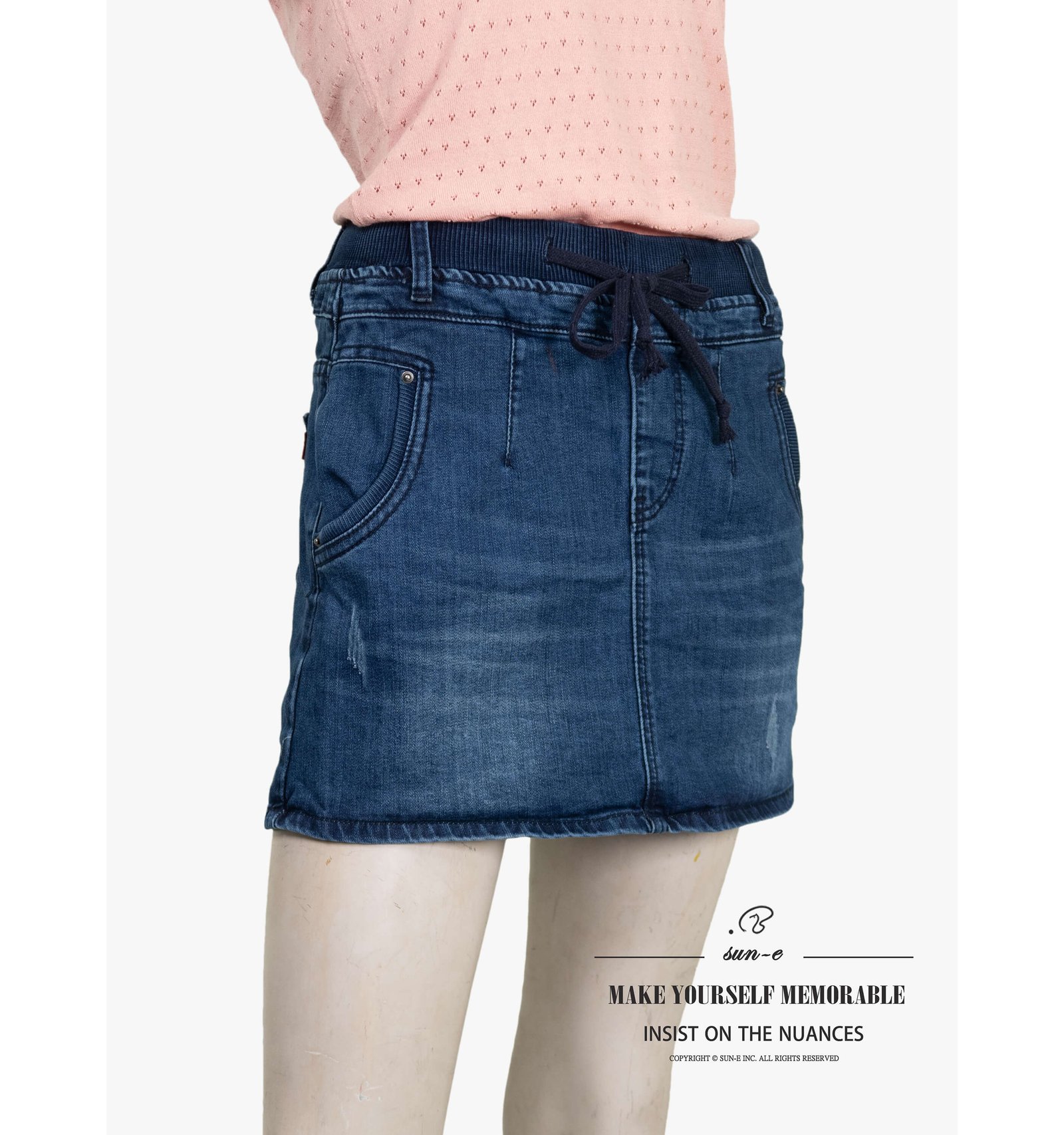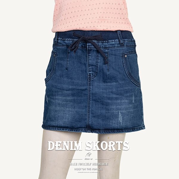 sun-e牛仔褲裙、中腰短褲裙、彈力牛仔裙、丹寧褲裙、涼爽顯瘦短裙、全腰圍寬版鬆緊帶裙子、Womens Denim Skorts、Mid-rise Elastic Waist Womens Denim Skirts (002-6852-34)深牛仔 S M L XL 2L (腰圍:66~89公分 / 26~35英吋) 女 [實體店面保障]