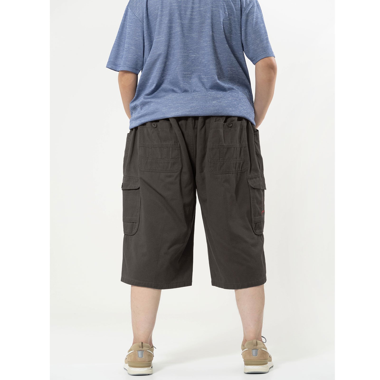 ![特加大尺碼八分褲 精工前染八分工作褲 純棉側袋褲 休閒短褲 大尺碼男裝 多口袋工作短褲 側貼袋休閒褲 大尺碼短褲 工裝褲 口袋褲 後腰圍鬆緊帶 Extra Large Cropped Pants Big And Tall Cargo Pants Cargo Shorts Casual Shorts Cargo Pants(327-1095)灰色、(327-1096)深卡其、(327-1097)黑色 單一尺寸 F (腰圍:112~152公分 / 44~60英吋) 男 [實體店面保障] sun-e:圖片 19](https://sune1984.com/wp-content/uploads/2026/03/327-1095_1096_1097_P18.jpg)