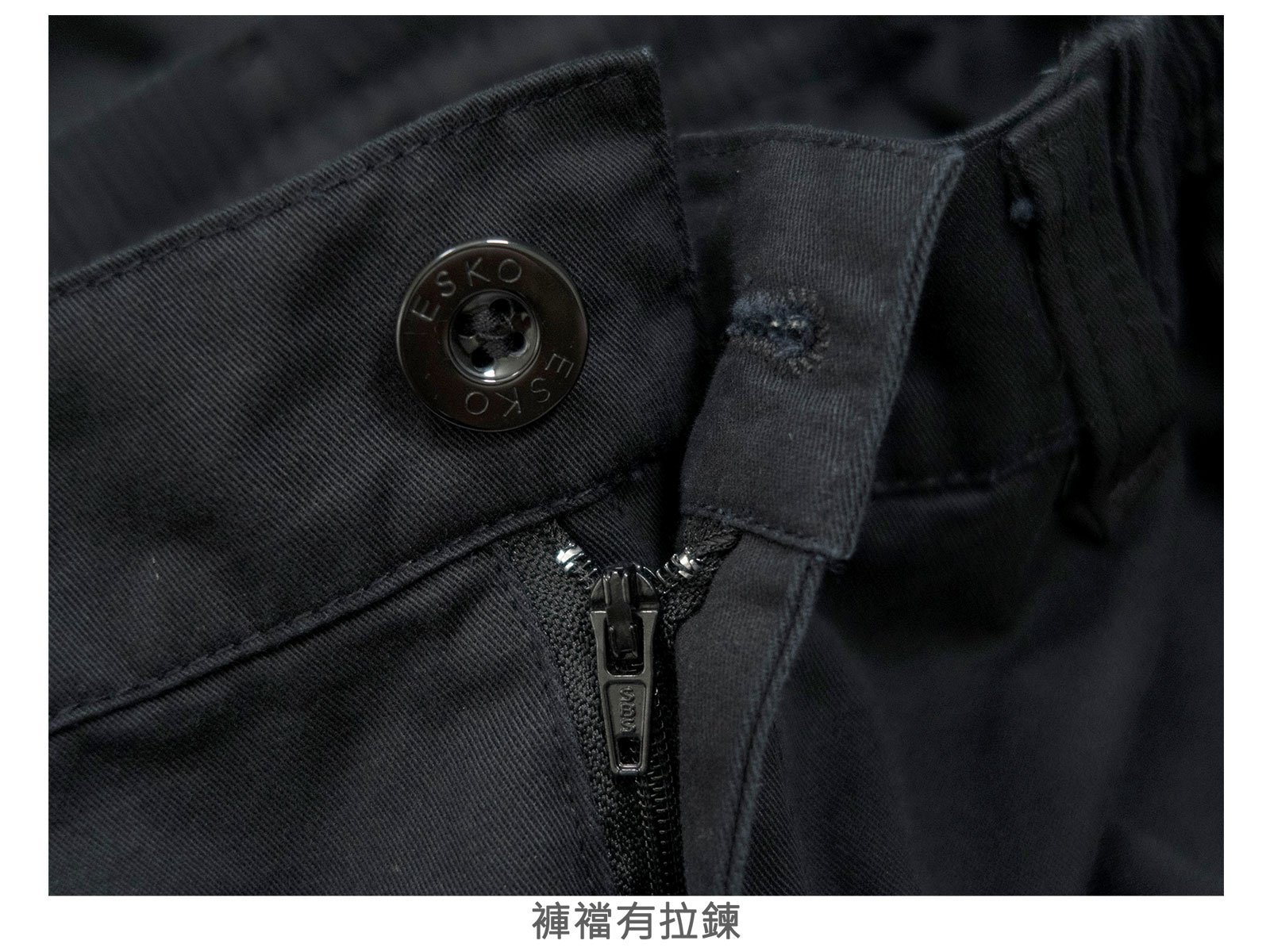 腰圍有皮帶環(褲耳),褲檔有拉鍊。