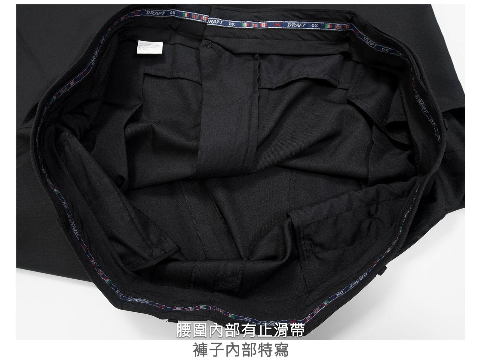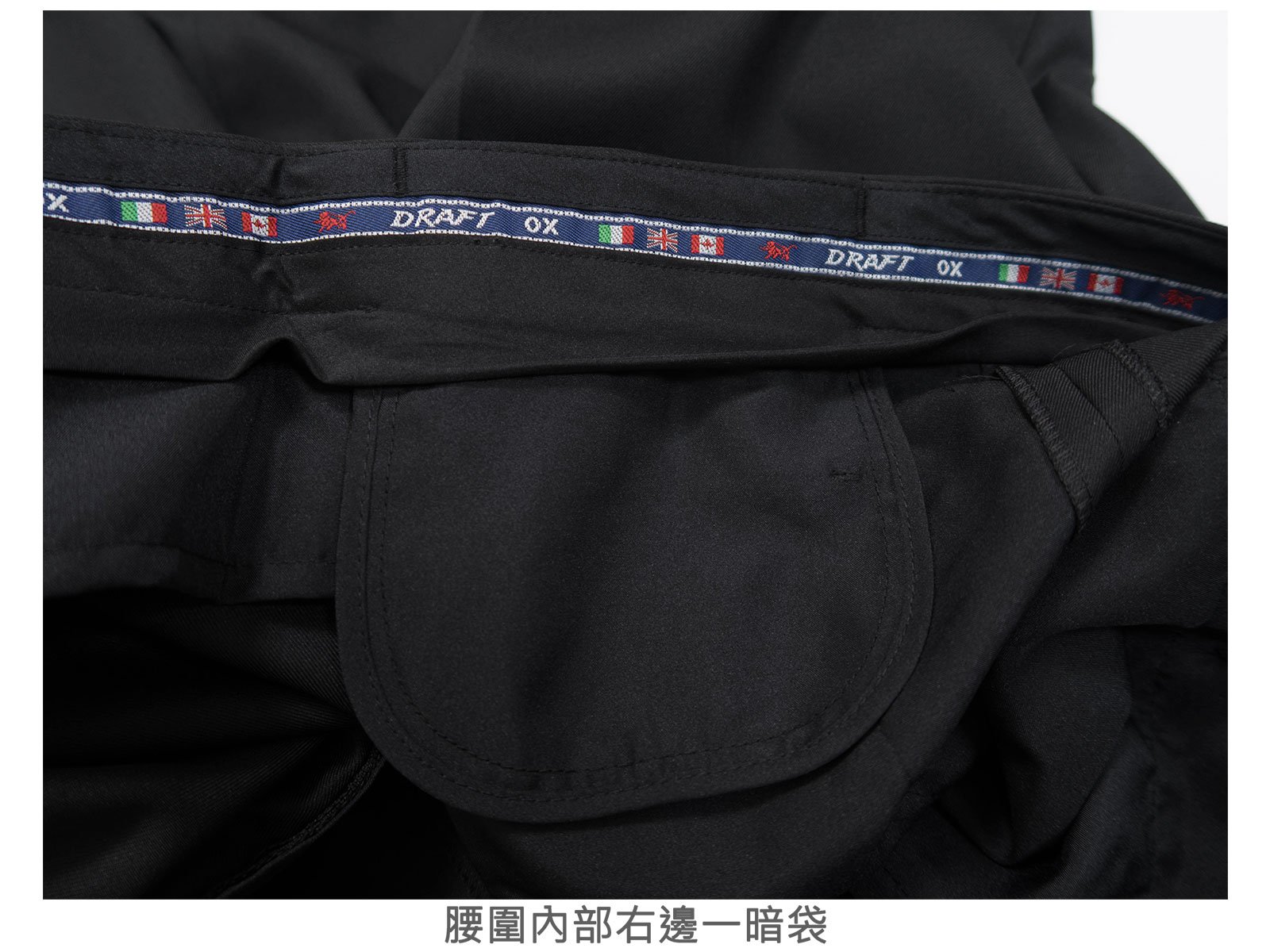腰圍內部有止滑帶,腰圍內部右邊一暗袋。
