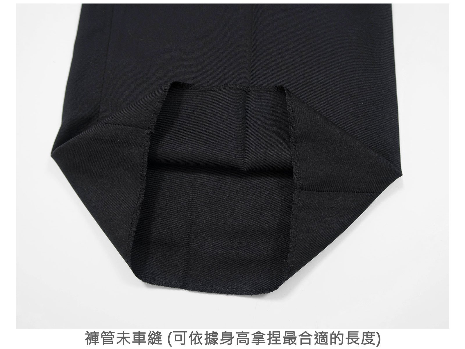 褲管未車縫 (可依據身高拿捏最合適的長度)。