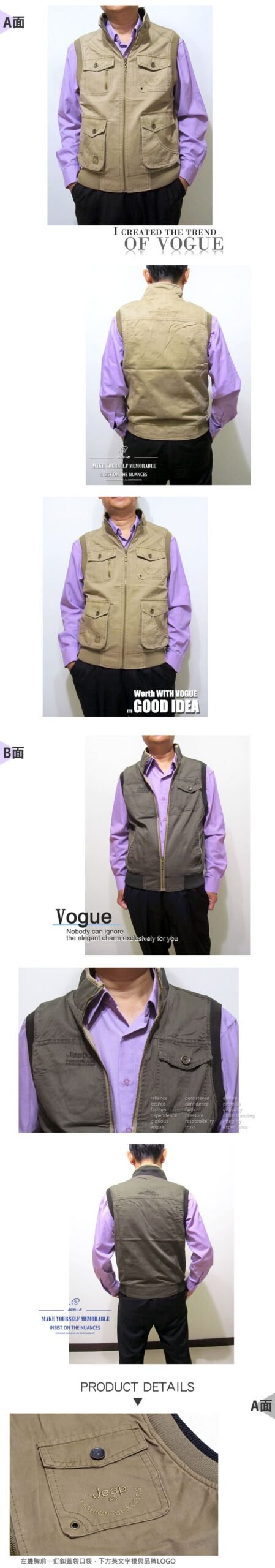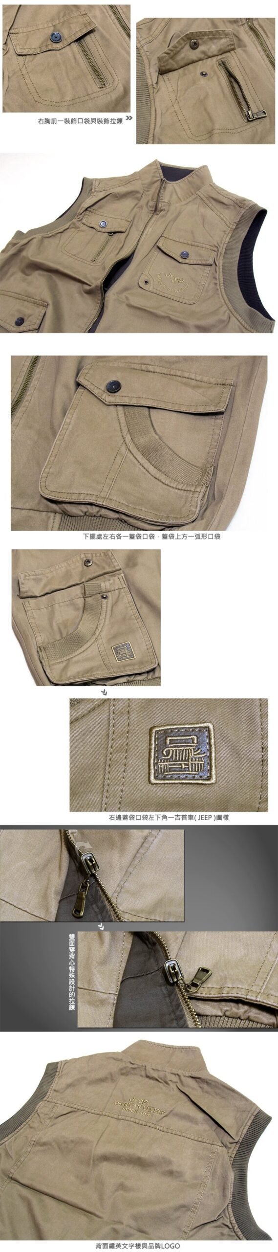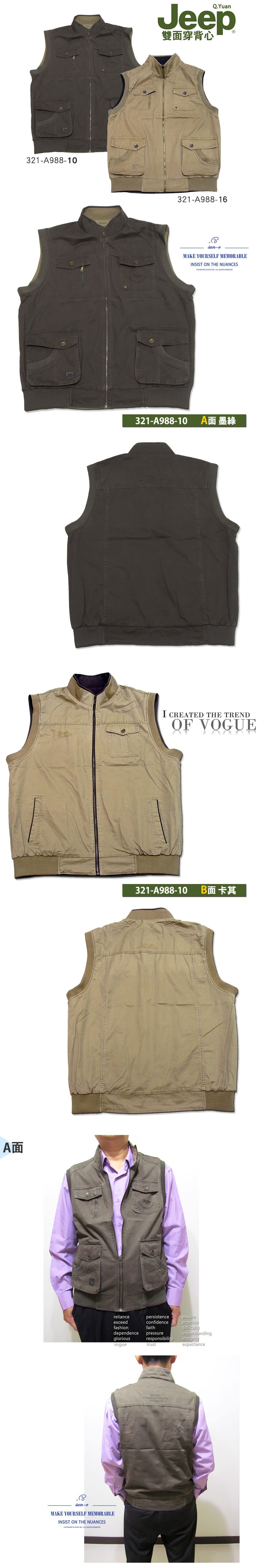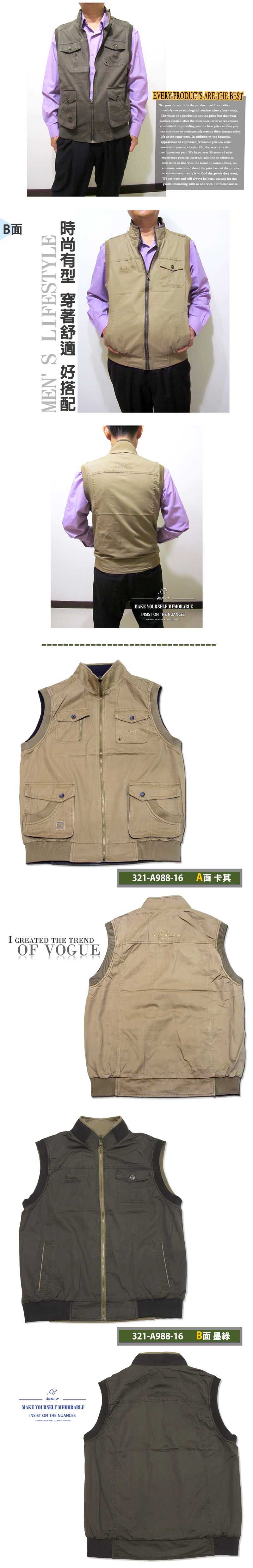 特加大尺碼雙面雙色Jeep背心、加大尺碼保暖背心、釣魚背心、攝影背心、雙面可穿背心、多口袋背心、戶外休閒馬甲、全棉100%背心、登山背心、美式休閒背心、多功能背心、記者背心、導演背心、工作背心、卡其色背心、墨綠色背心、REVERSIBLE VEST(321-A988-10)墨綠色(321-A988-16)卡其色 胸圍:5L 7L 9L(49~55英吋)