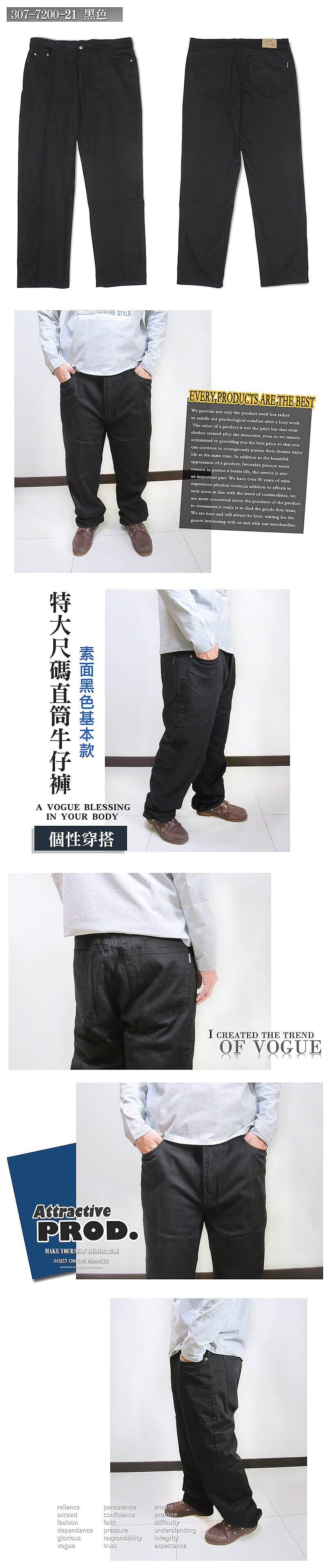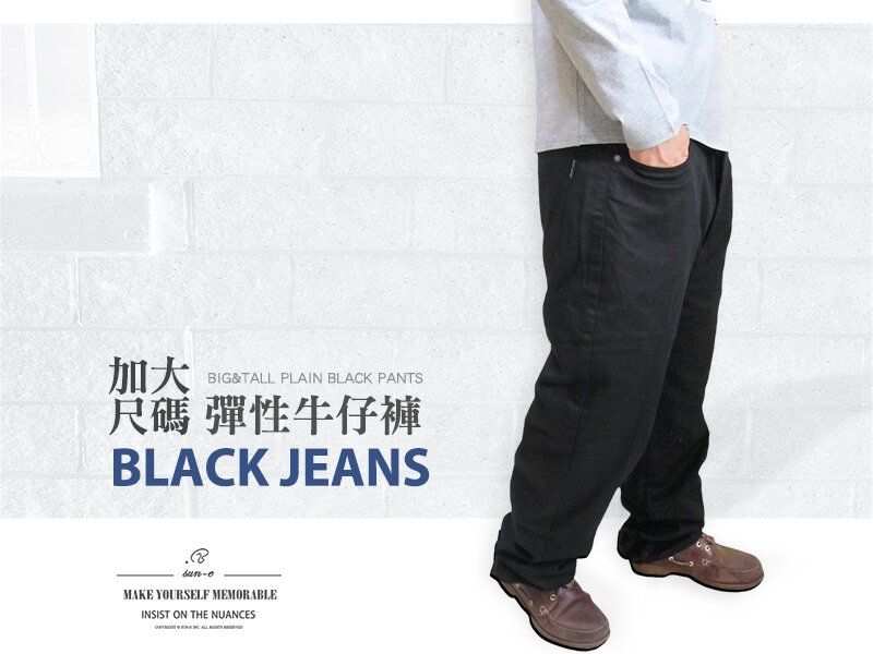 sun-e特加大尺碼中直筒彈性牛仔長褲、素面牛仔褲、素面長褲、黑色牛仔褲、黑色長褲(307-7200-21)黑色 腰圍:42 44 46 48 50(英吋) [實體店面保障]