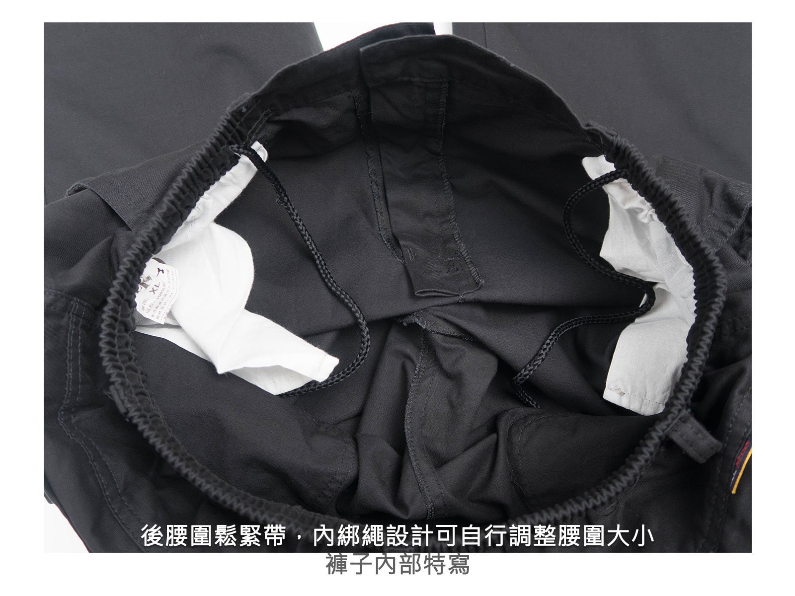 後腰圍鬆緊帶,內綁繩設計可自行調整腰圍大小。