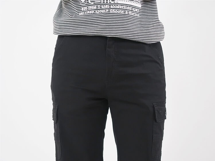 腰圍有皮帶環(褲耳),褲檔有拉鍊。