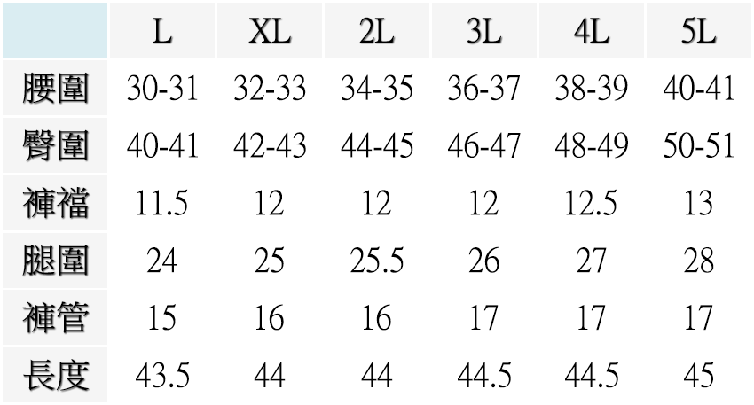 ▍尺寸表 Size Chart