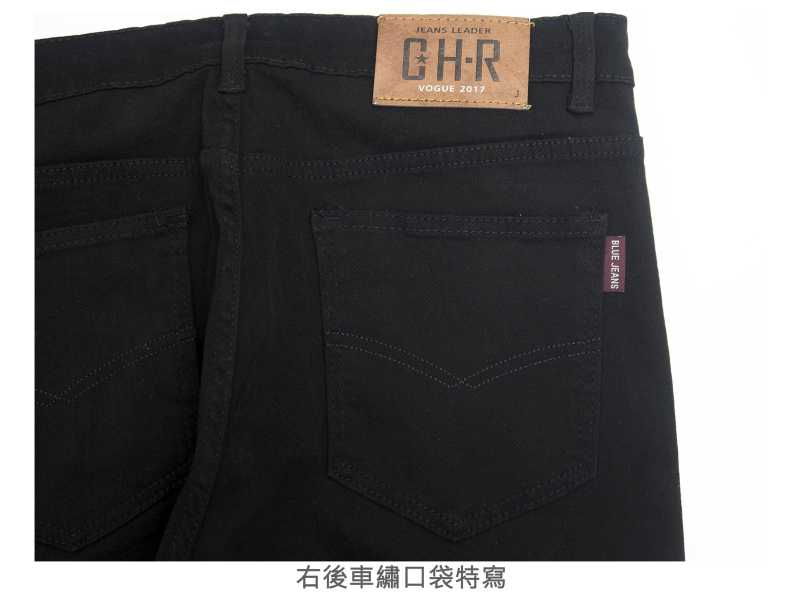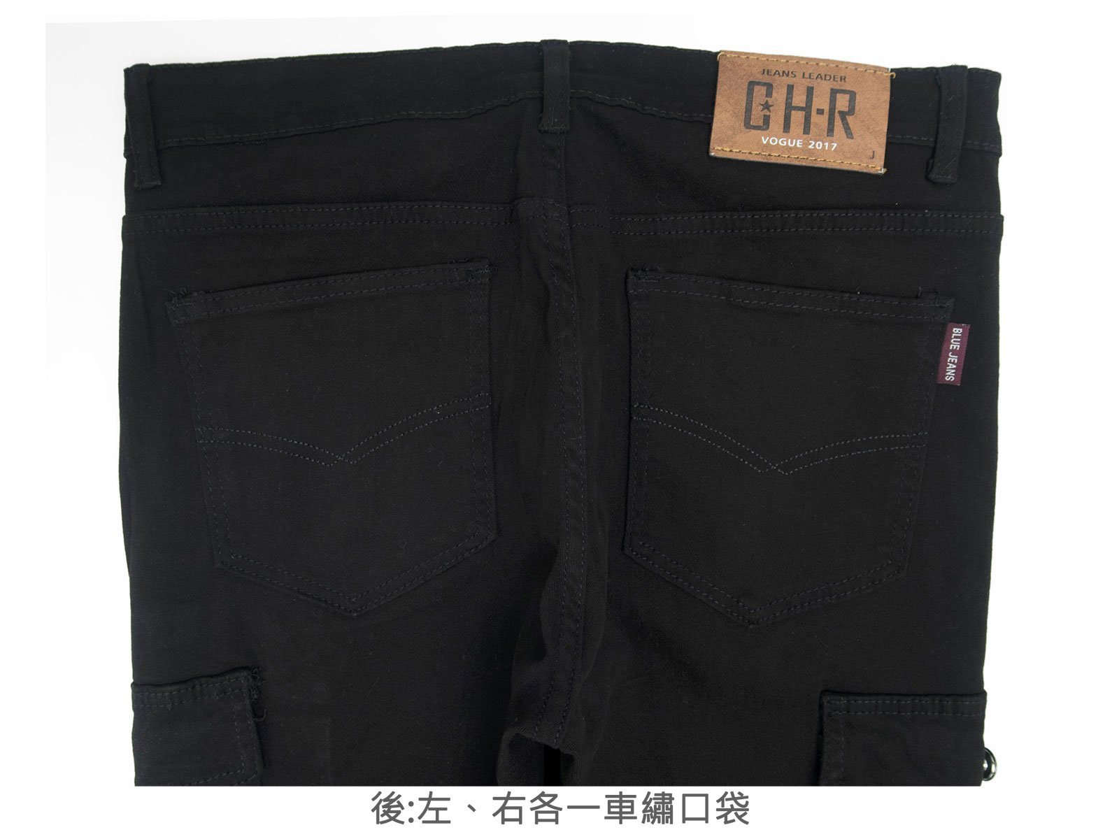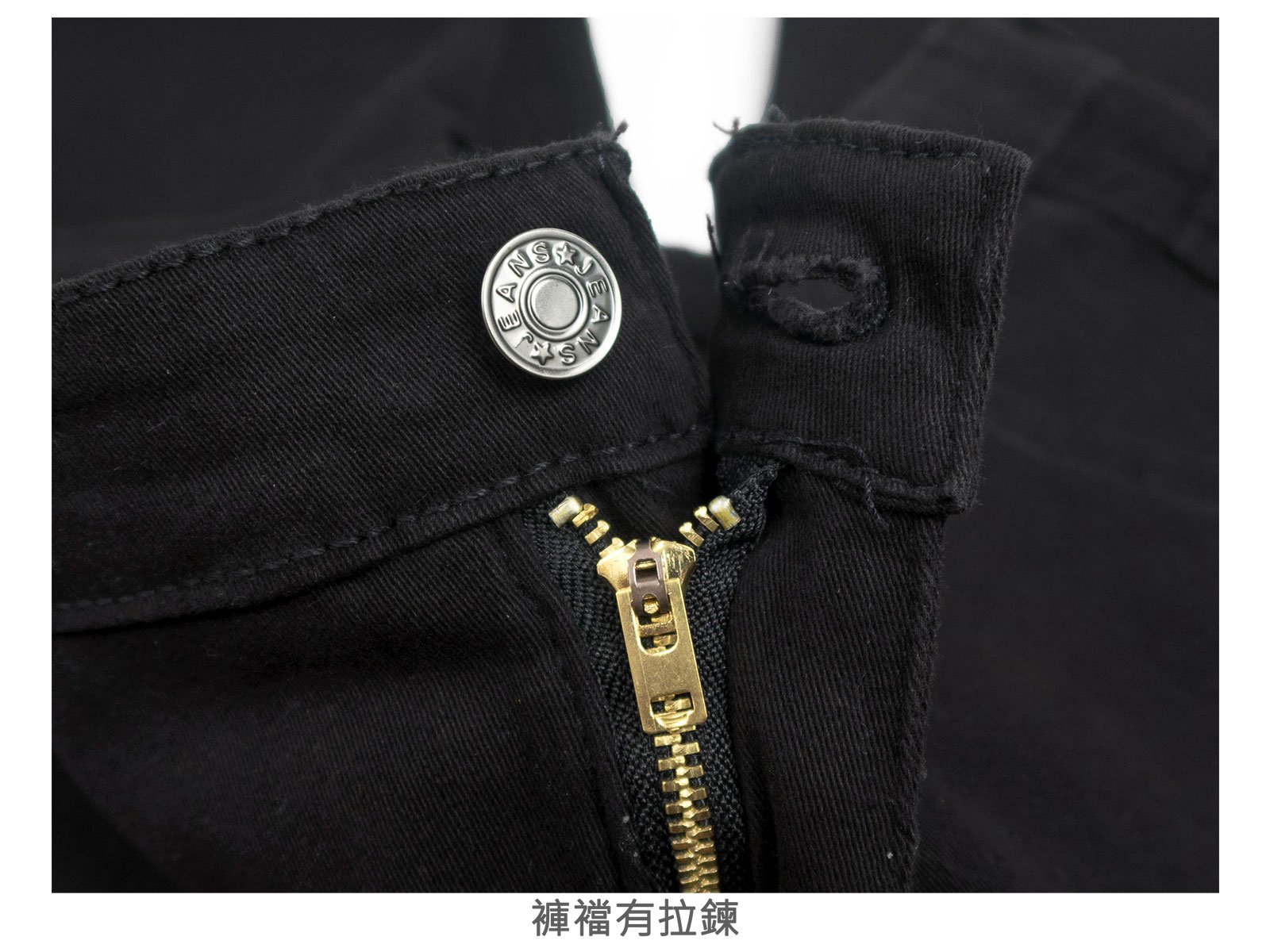 腰圍有皮帶環(褲耳),褲檔有拉鍊。
