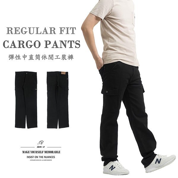 sun-e素面休閒工裝褲、工作長褲、休閒長褲、彈性長褲、側袋褲、側貼袋工作褲、多口袋休閒褲、口袋褲、Stretch Plain Cargo Pants、Casual Pants (337-2163-21)黑色 M L XL 2L 3L 4L 5L (腰圍:28~41英吋 / 71~104公分) 男 [實體店面保障]