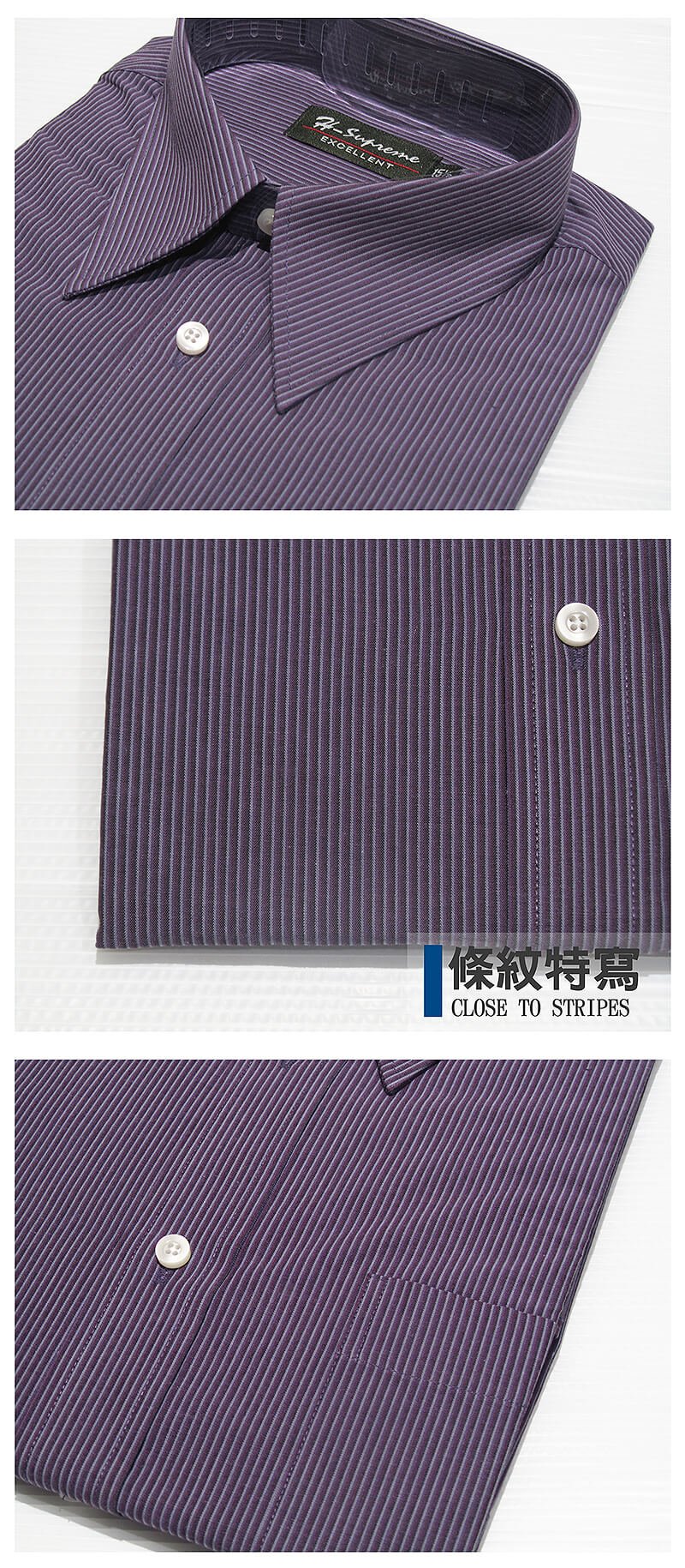 sun-e322腰身剪裁正式襯衫、直條紋襯衫、舒適標準襯衫、面試襯衫、上班族襯衫、商務襯衫、長袖襯衫、不皺免燙襯衫 (322-3779)黑色紫色直條紋 領圍:14.5~18英吋 [實體店面保障]