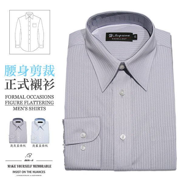 sun-e322腰身剪裁正式襯衫、直條紋襯衫、舒適標準襯衫、面試襯衫、上班族襯衫、商務襯衫、長袖襯衫、不皺免燙襯衫 (322-3794)淺藍直條紋、(322-3795)淺灰直條紋 領圍:15~18英吋 [實體店面保障]